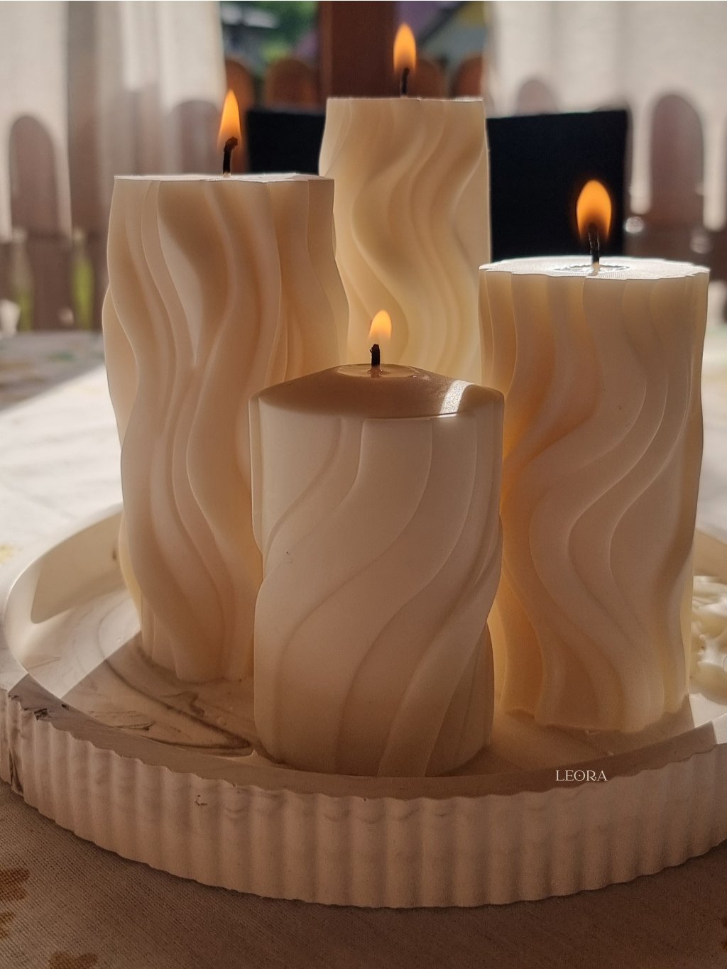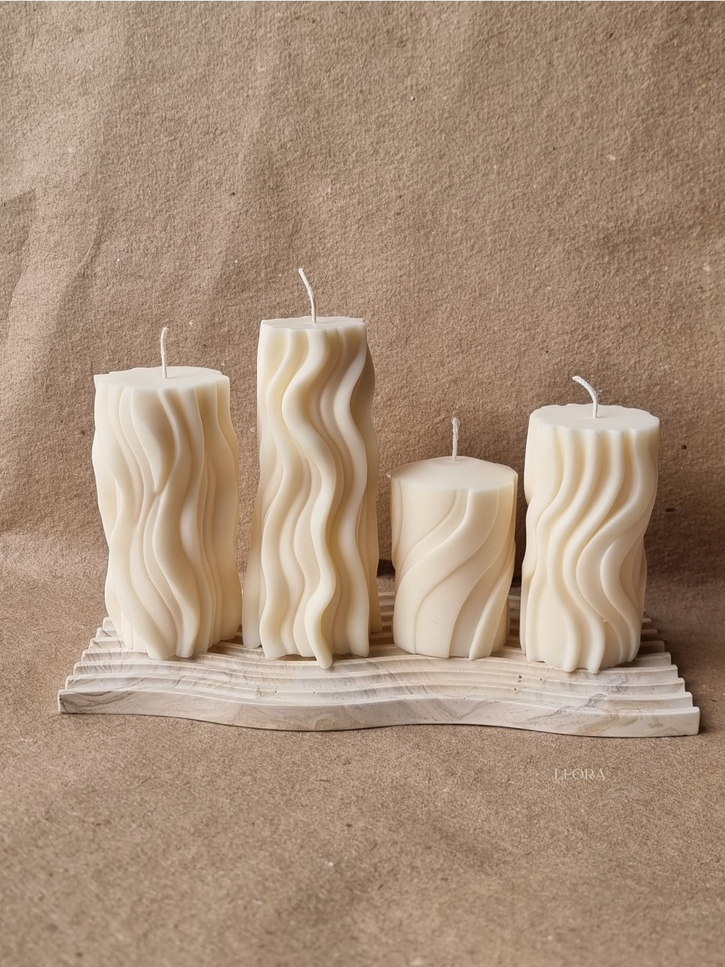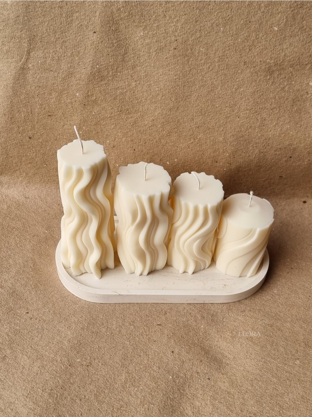 • Sójové sviečky ZVLNENÉ. Sadu tvoria štyri stojace sviečky v rôznych výškach.