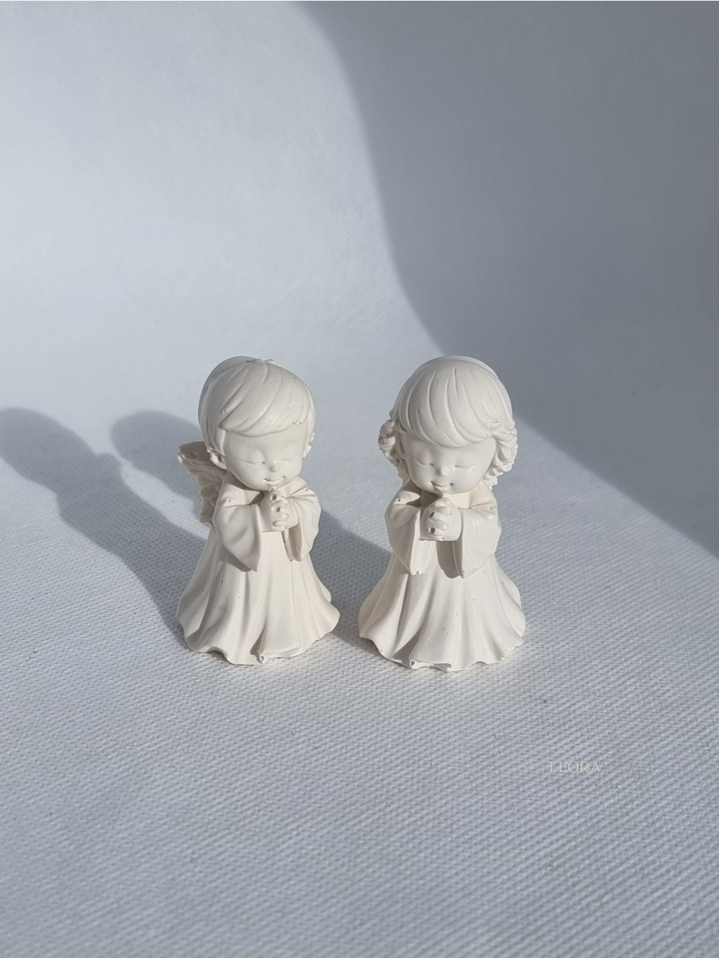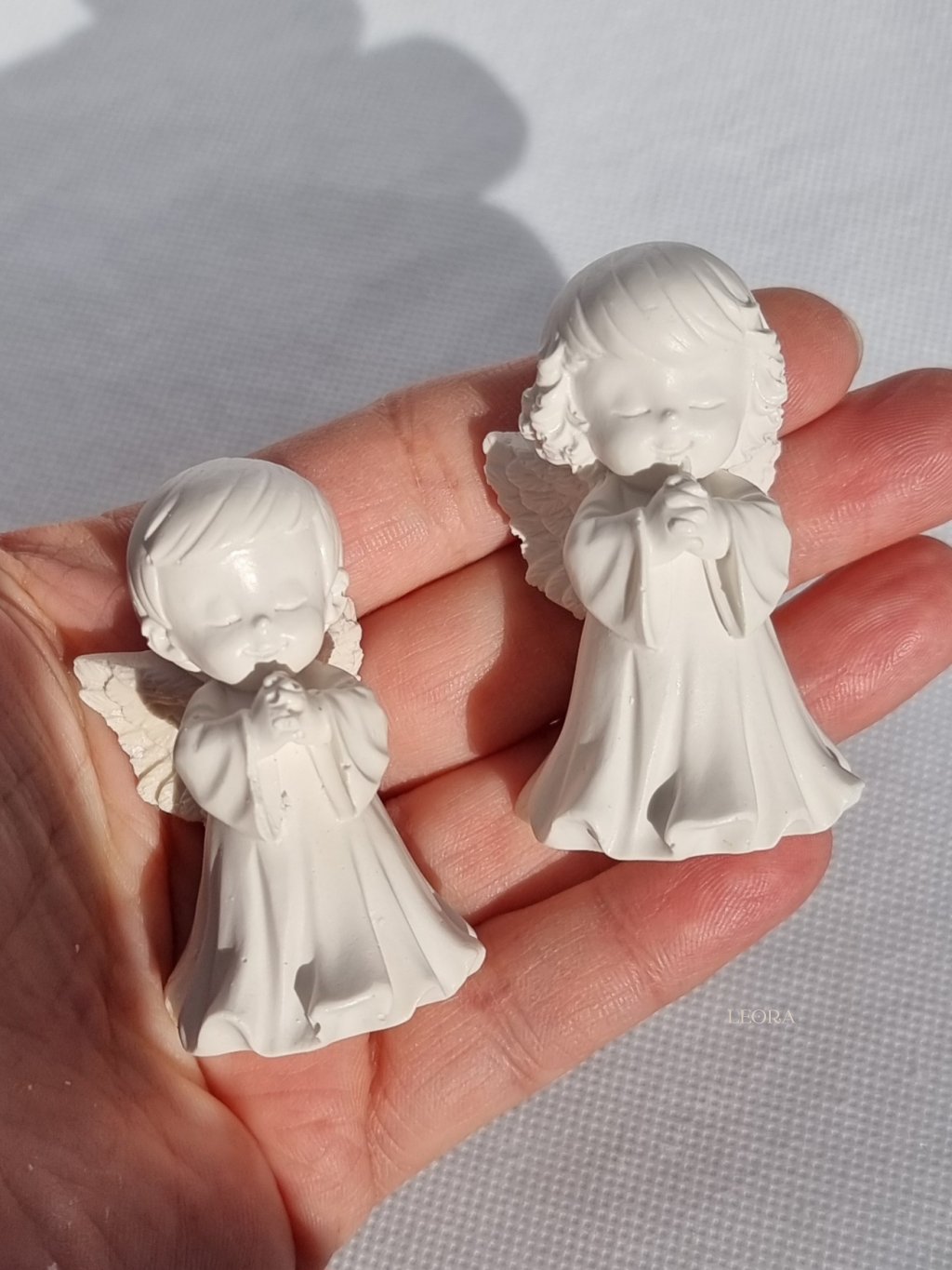 Ručne robené - odlievaním do formy. Každý kus je originál a jedinečný. Cena je za pár sošiek - dvoch anjelikov ( chlapec+dievča)