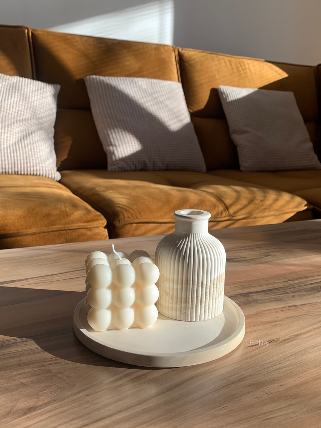 Pod sviečky odporúčam dokúpiť podnos alebo tácku, ktorú vyrábam z jesmonite. Vďaka jedinečnému dizajnu budú skvelou dekoráciou vo vašej domácnosti.