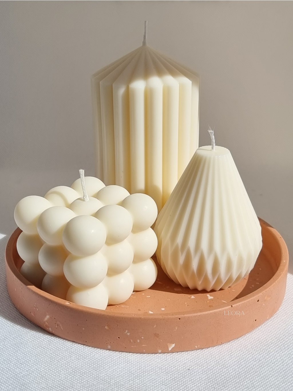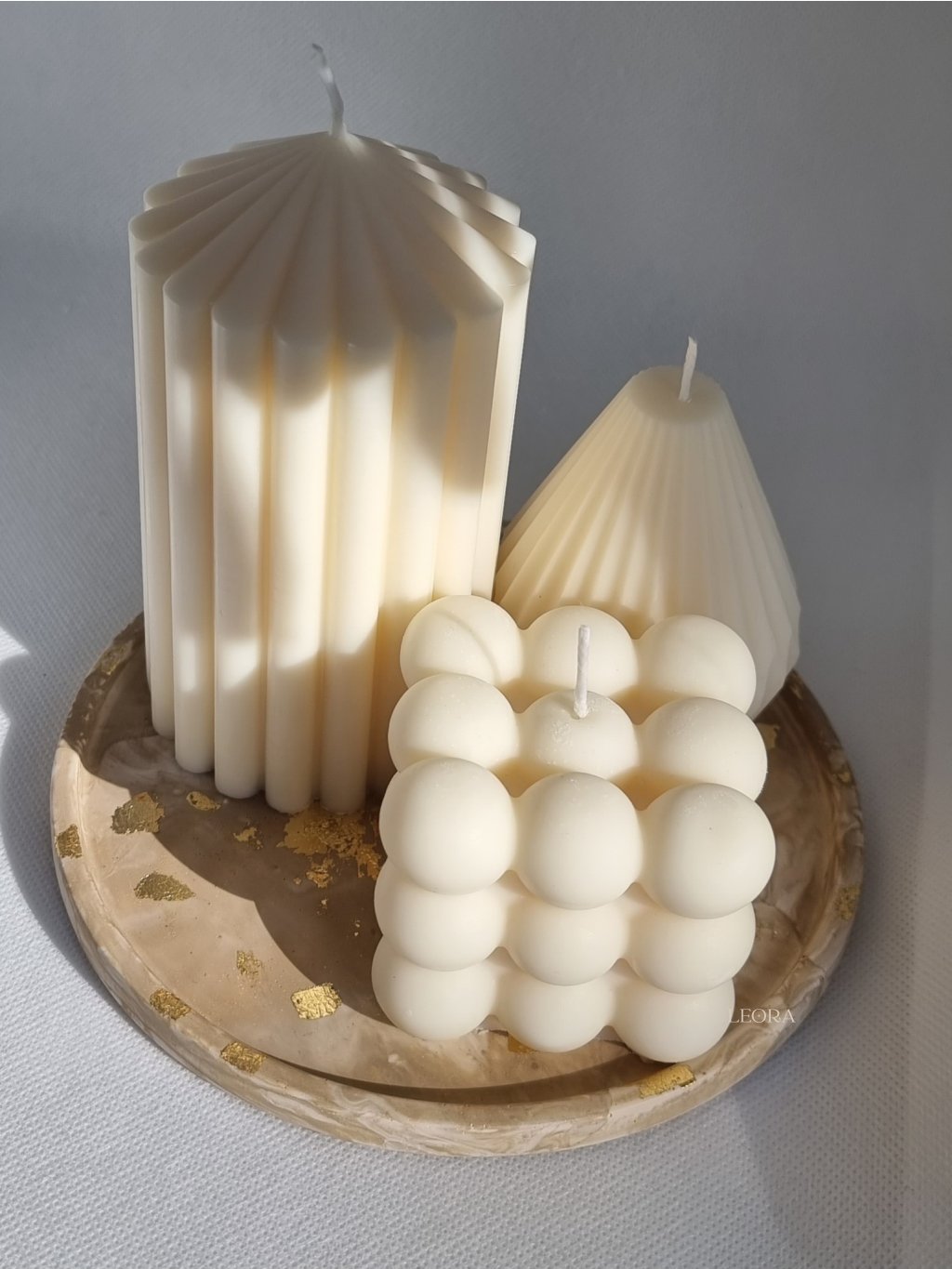 Sadu tvorí vysoká sviečka MIDI PILLAR, BUBLINKY a ORIGAMI. Možné kúpiť aj samostatne.