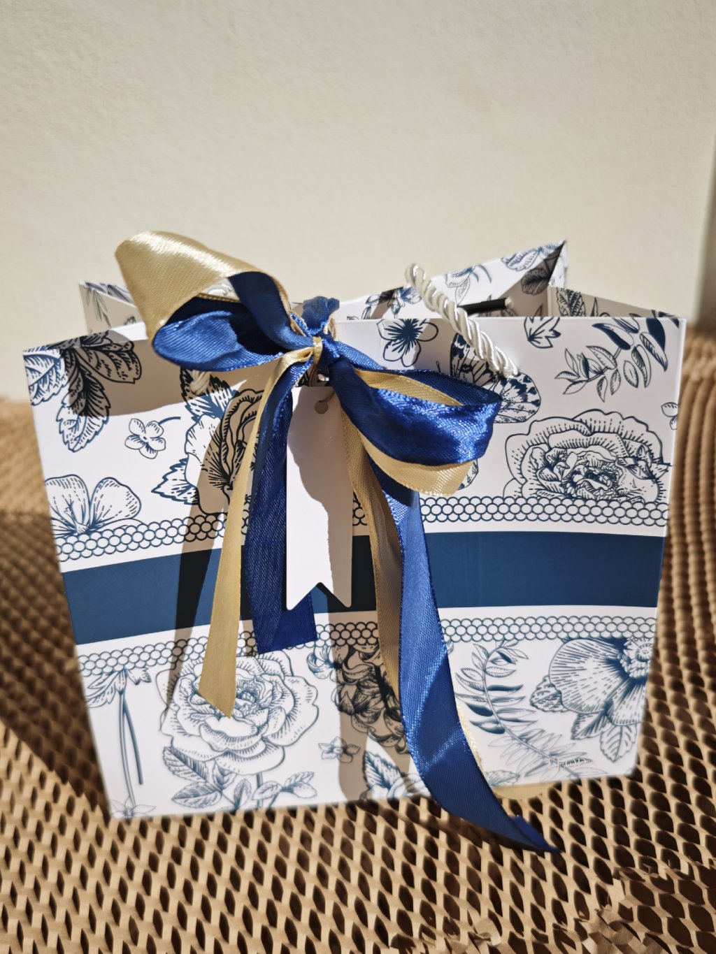Celý set je zabalený v elegantnej papierovej taške s mašľami a visačkou na osobný odkaz, pripravený rovno potešiť ako dar.