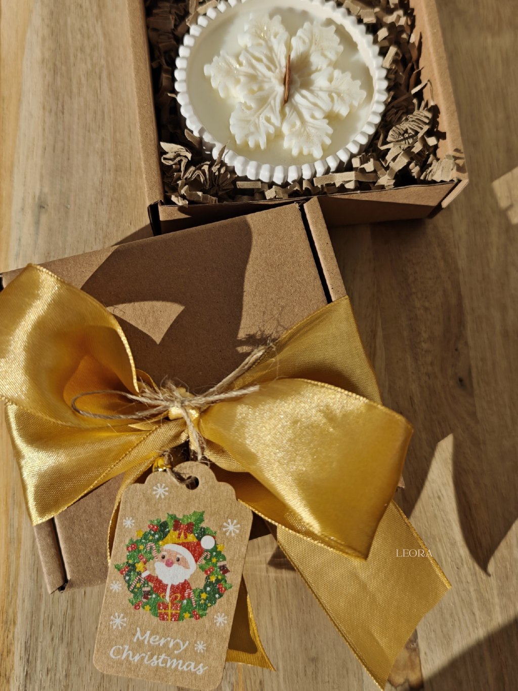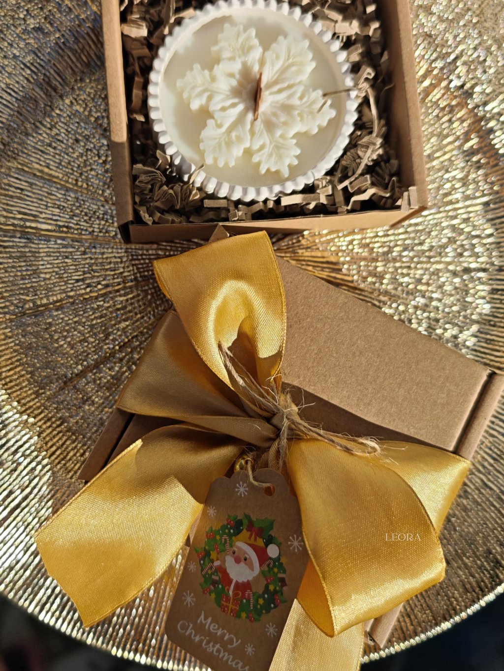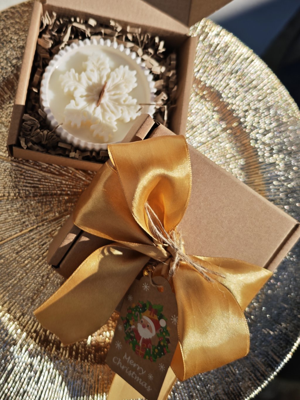 Objavte jedinečné spojenie ručne odlievanej nádobky z eko materiálu Jesmonite a prírodnej sviečky zo sójového vosku. Každý kus je malým umeleckým dielom, kde sa snúbi elegantný dizajn s podmanivými vianočnými vôňami a s vločkou so zlatými eko trbieltkami.