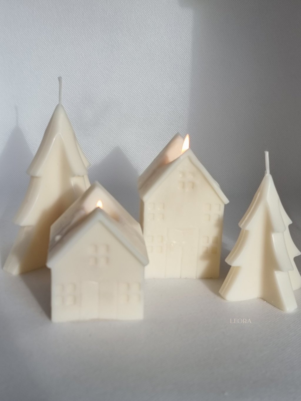 Preneste sa do rozprávkovej zimnej krajiny s našou kolekciou sviečok v tvare domčekov a stromčekov. Každý kúsok je malým umeleckým dielom, ručne odlievaným zo sójového vosku, ktorý vašim Vianociam pridá neopakovateľné čaro.