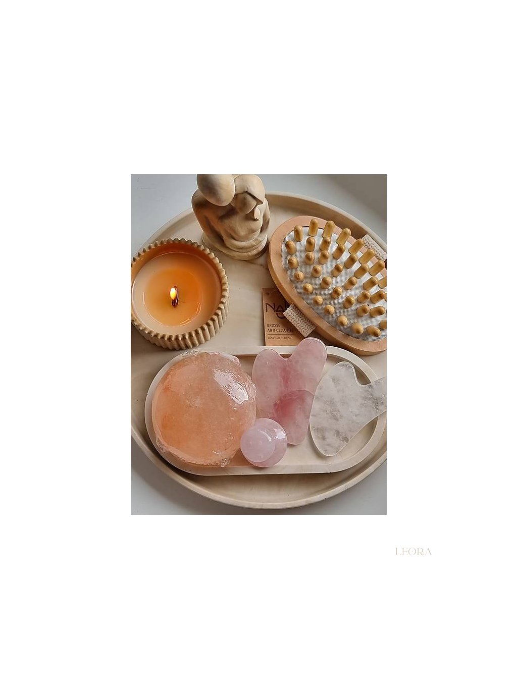 Masážny kameň Masáž so soľným kryštálovým masážnym kameňom zlepšuje prekrvenie pokožky, svalov a spojivových tkanív. Má relaxačný a detoxikačný účinok, čistí pokožku a zjemňuje ju. Spôsob použitia: Masážny kameň zohrejte v rukách. Masírujte väčšie plochy tela plochými koncami masážneho kameňa a menšie časti tela zaoblenými koncami. Na uľahčenie masáže je možné použiť aj masážny olej (napr. jojobový olej alebo kokosový olej). Avšak vzhľadom na pórovitosť kameňov soľných kryštálov nemôžu byť potom zbavené oleja, takže na to pamätajte.