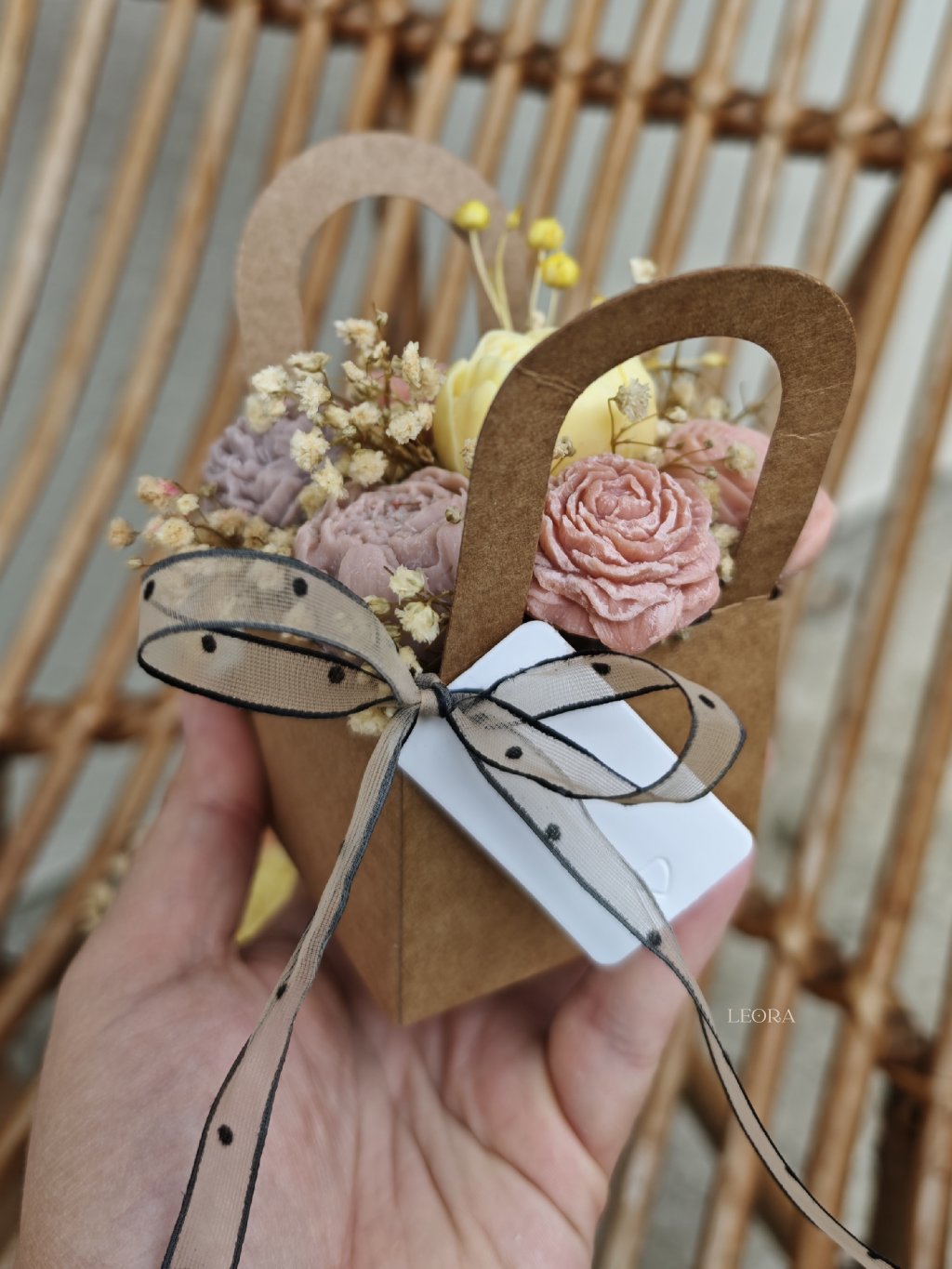 Kytička, ktorá v sebe ukrýva niečo viac – príjemnú vôňu, ktorá zútulní každý domov. Tento mini flowerbox obsahuje ručne odlievané sójové vonné vosky v tvare kvetov, dozdobené gypsomilkou pre ešte jemnejší a romantickejší vzhľad.