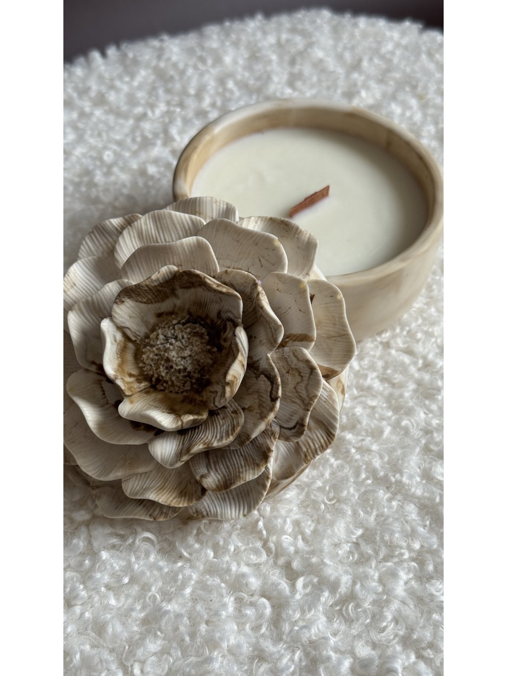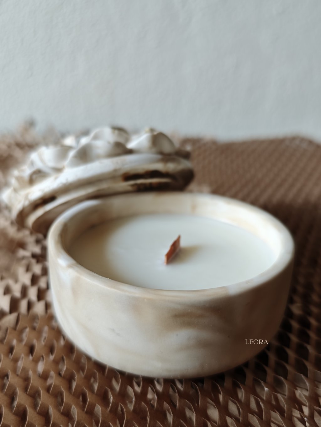 Prírodná a udržateľná sviečka v ručne robenej nádobke (z jesmonite) s dreveným knôtom zaliata zmesou prémiového prírodného vosku. Doplnená o vysokokvalitnú vôňu - namiešanú exkluzívne pre sviečky parfumérmi.