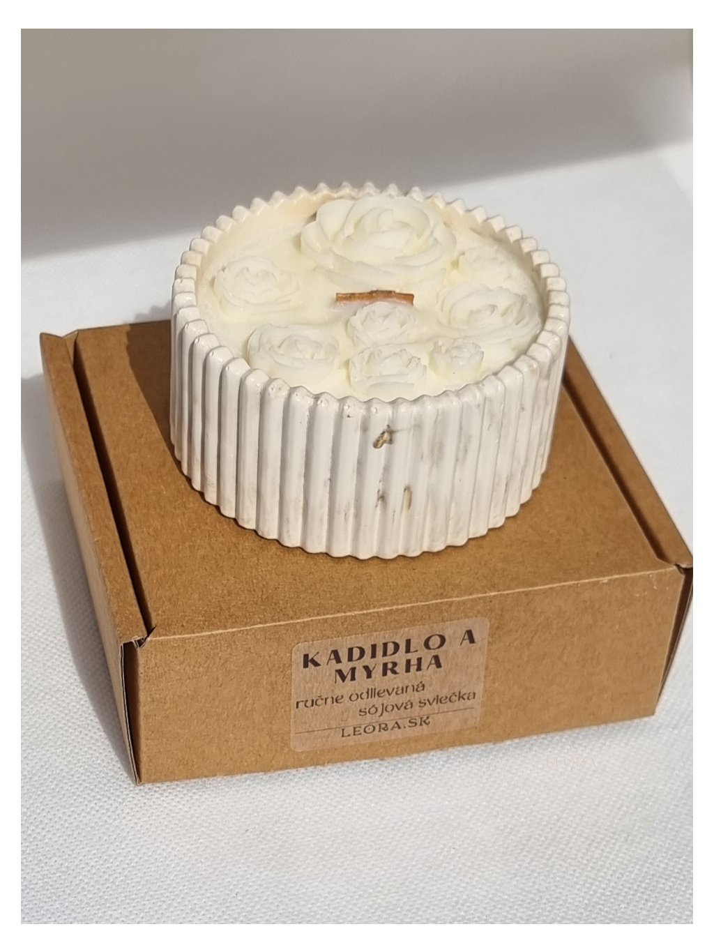 Prírodná a udržateľná sviečka v ručne robenej nádobke (z jesmonite) s dreveným knôtom zaliata zmesou prémiového prírodného vosku. Doplnená o vysokokvalitnú vôňu - namiešanú exkluzívne pre sviečky parfumérmi. Dozdobená bielymi kvietkami.