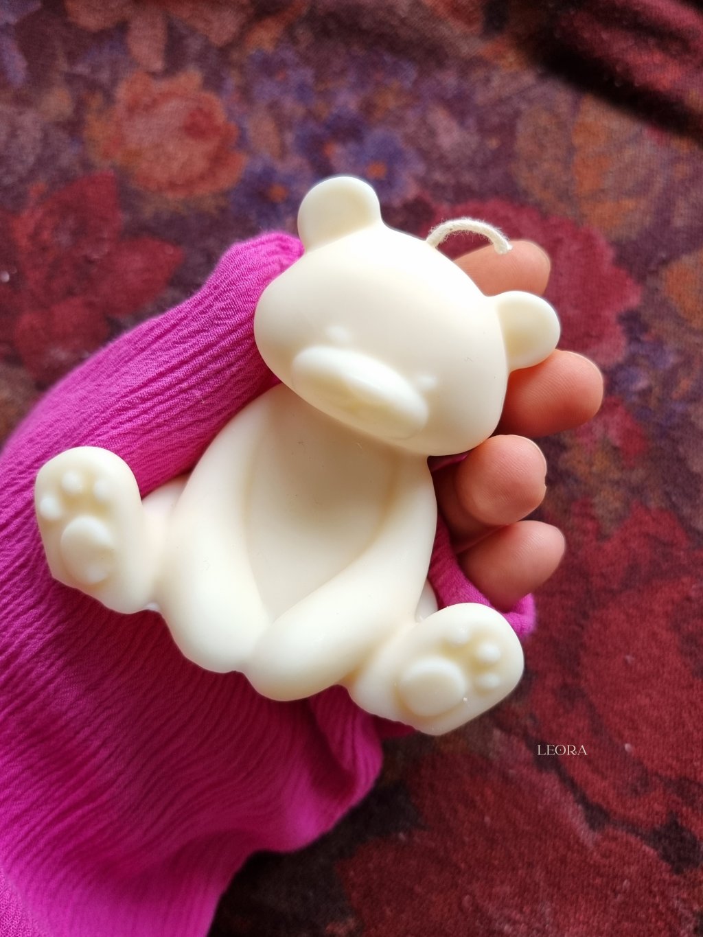 LEORA handmade sviečka je vyrábaná s dôrazom na detail, vďaka čomu je každý kus originál. Macko je ideálny ako milý darček pre deti aj dospelých – hodí sa na narodeniny, krstiny, baby shower, Valentína alebo ako drobná pozornosť „len tak“.