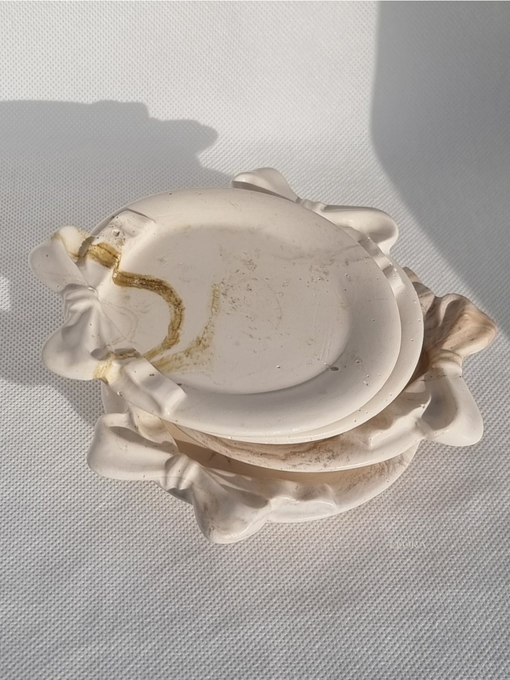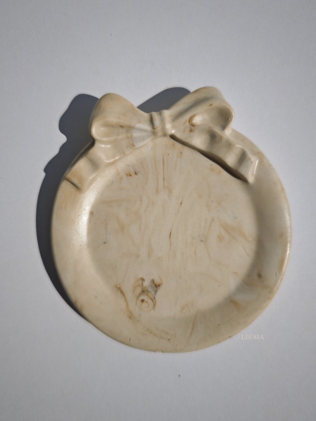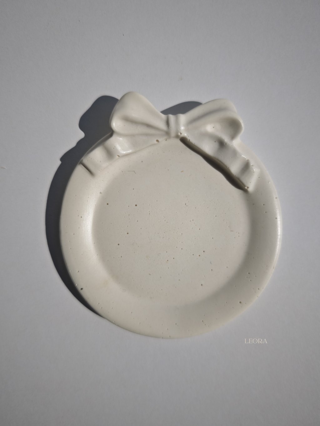 Ručne robené - odlievaním do formy. Každý kus je originál a jedinečný. Minimalistické okrúhle tácky s mašličkou v neutrálnych farbách. Prineste si kúsok elegancie do svojho domova.