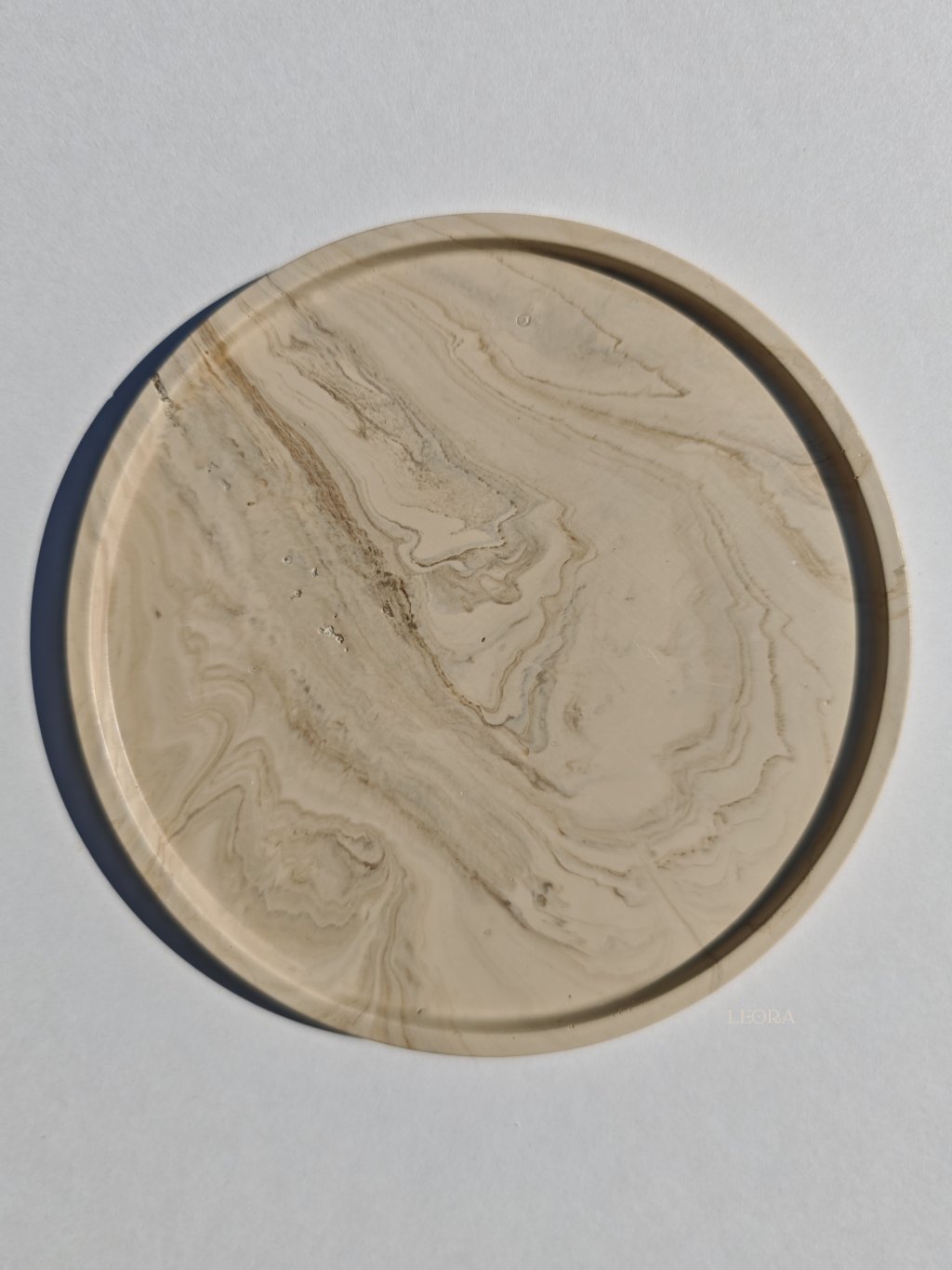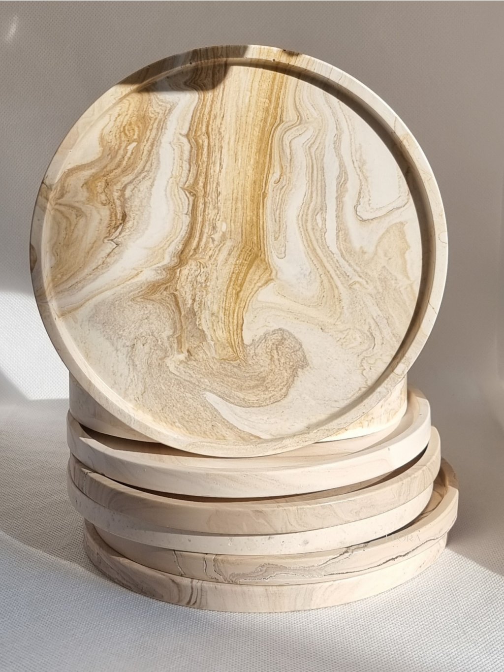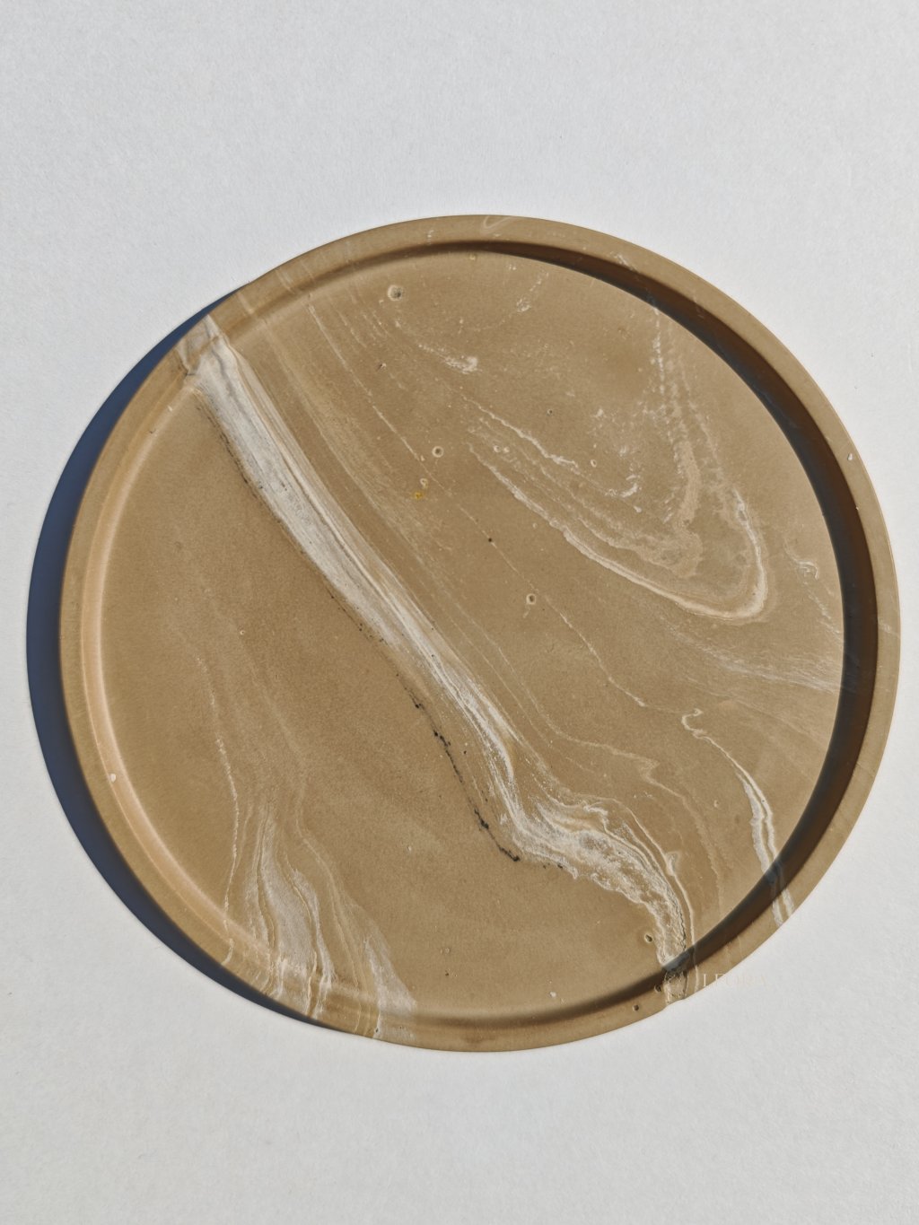 Ručne robené - odlievaním do formy. Každý kus je originál a jedinečný. Minimalistické okrúhle tácky v neutrálnych farbách. Prineste si kúsok elegancie do svojho domova.