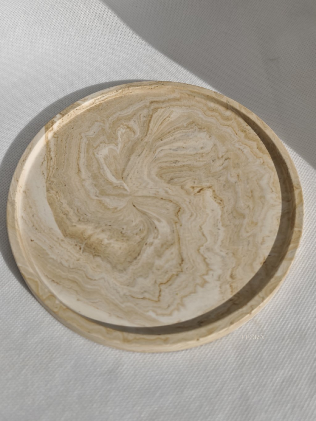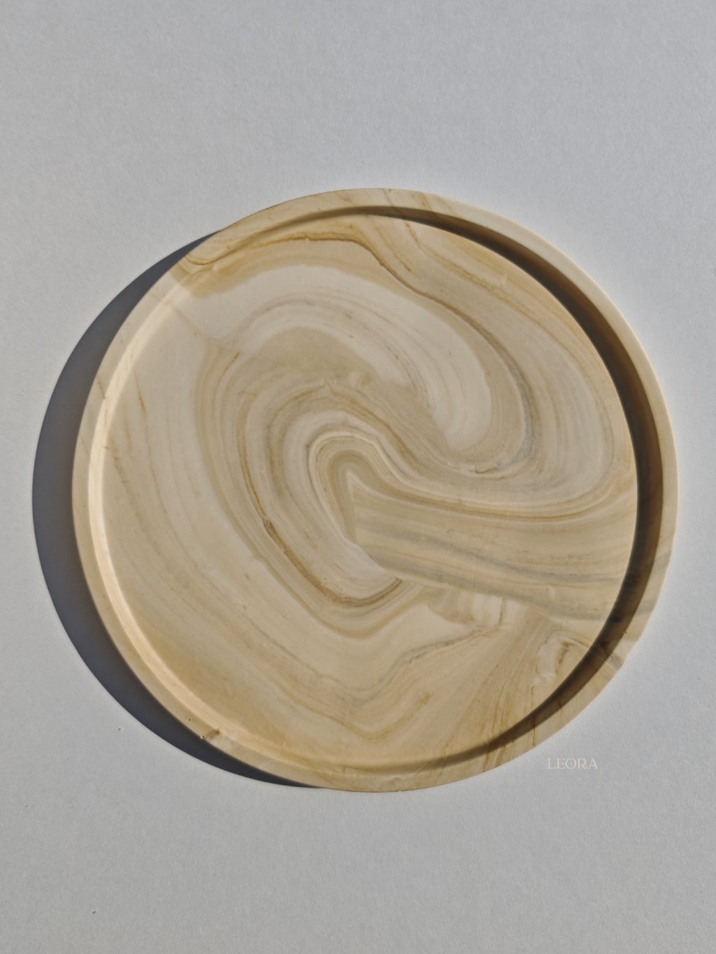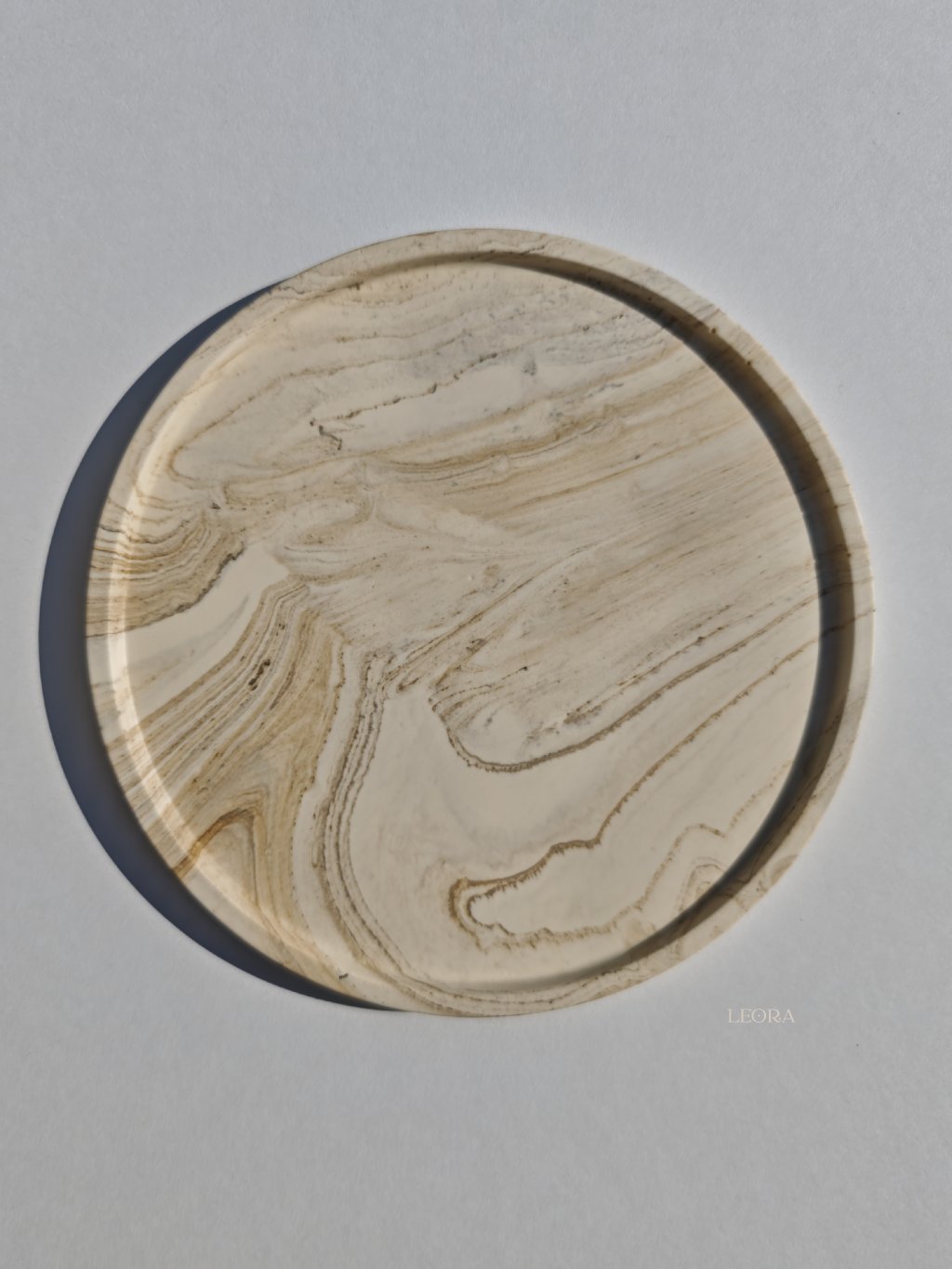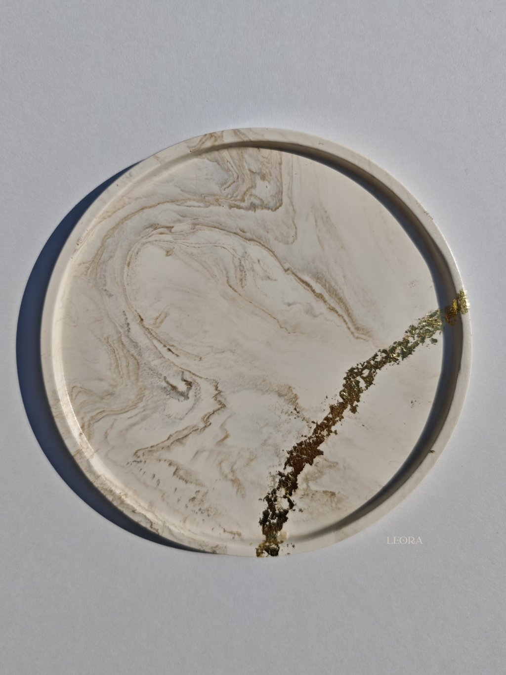 Ručne robené - odlievaním do formy. Každý kus je originál a jedinečný. Minimalistické okrúhle tácky v neutrálnych farbách. Prineste si kúsok elegancie do svojho domova.
