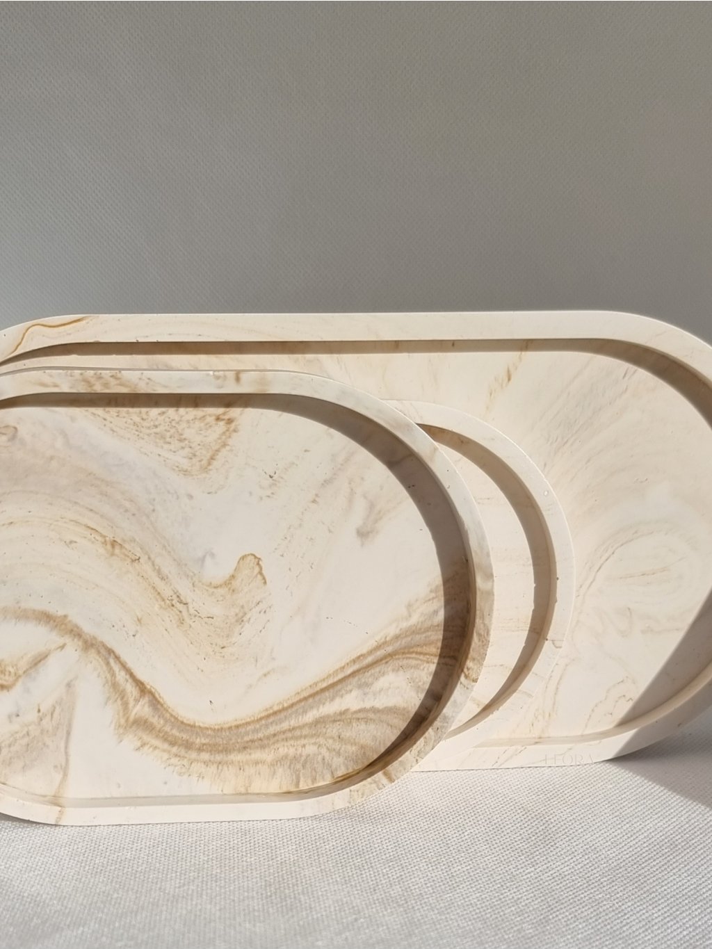 Ručne robené - odlievaním do formy. Každý kus je originál a jedinečný. Minimalistické tácky z hladkého jesmonitu. Ideálne na obľúbený nápoj či už horúcu kávu alebo vychladenú limonádu.