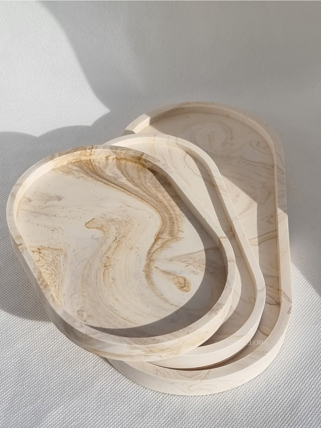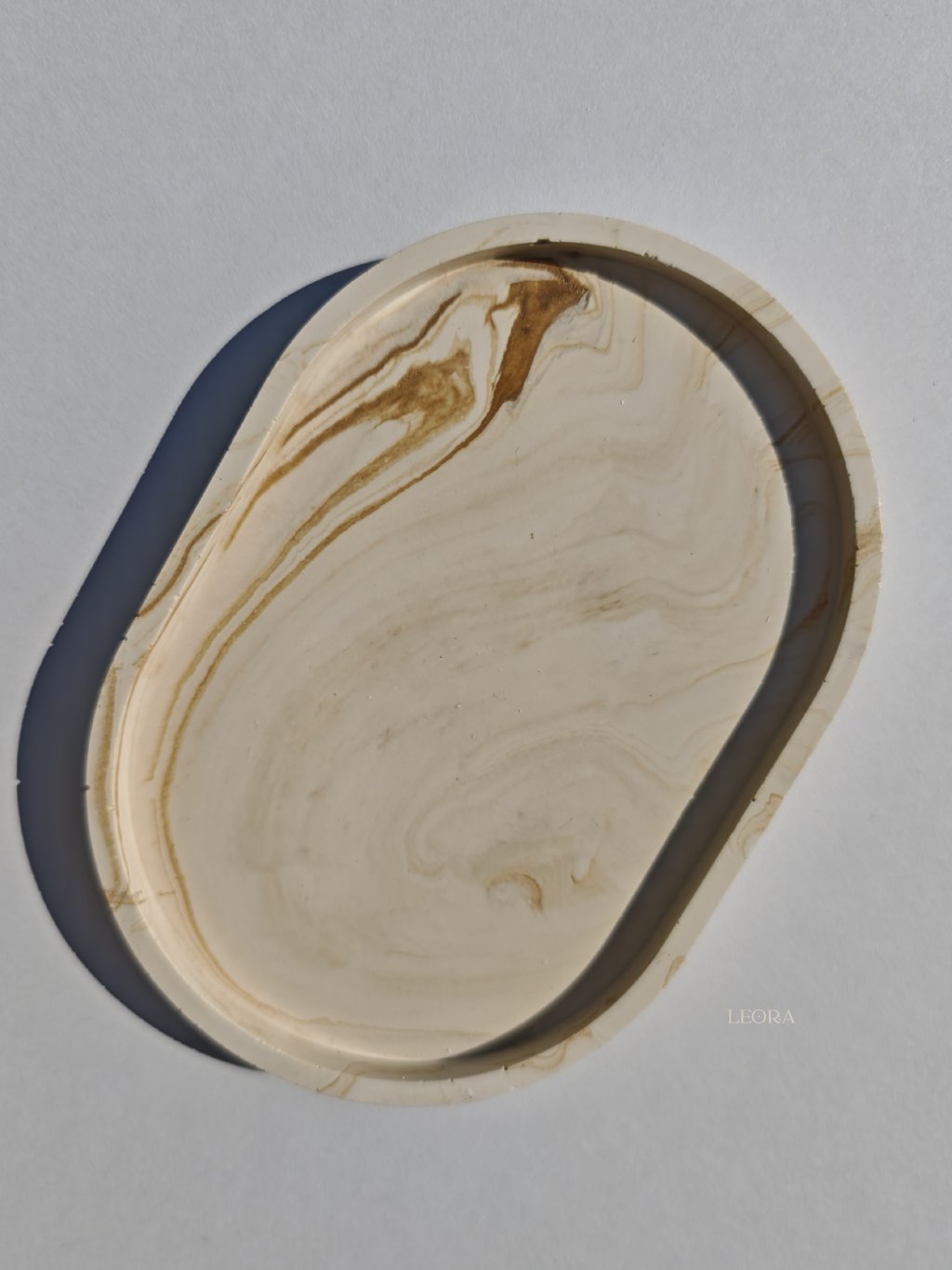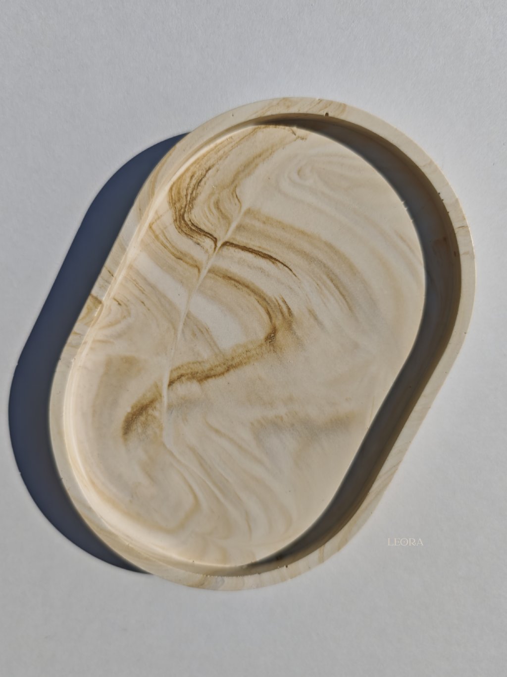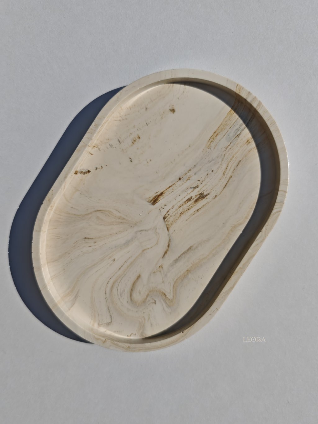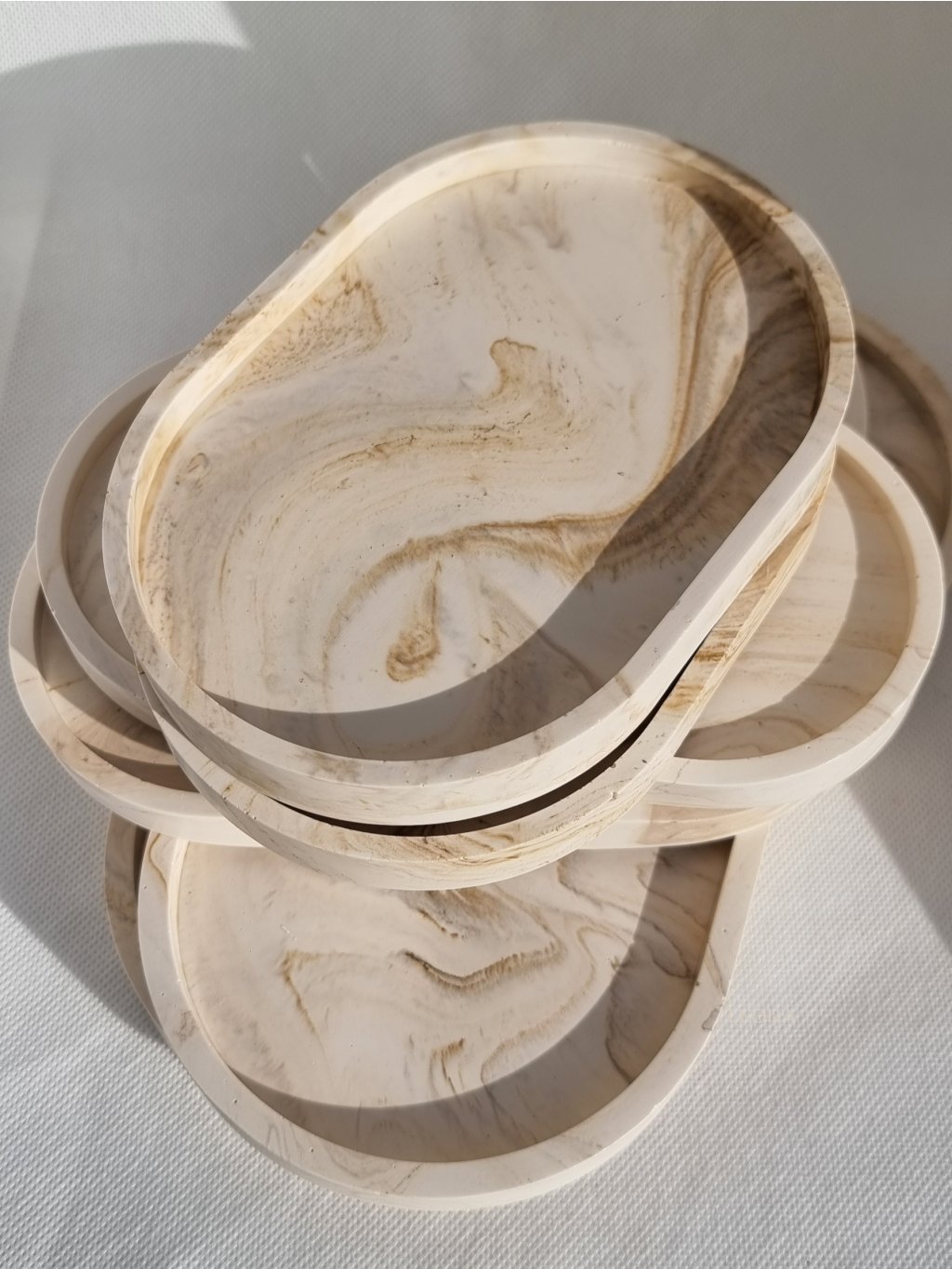 Ručne robené - odlievaním do formy. Každý kus je originál a jedinečný. Minimalistické tácky z hladkého jesmonitu. Ideálne na kľúče, šperky alebo ako podklad pod horúce nápoje.