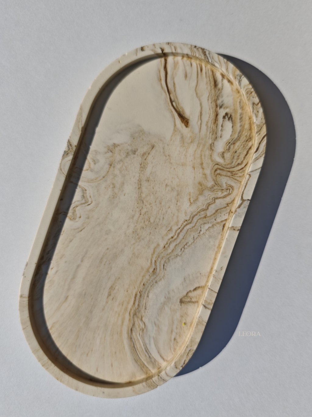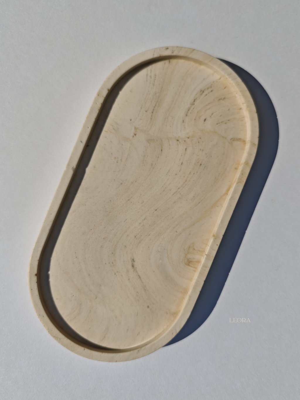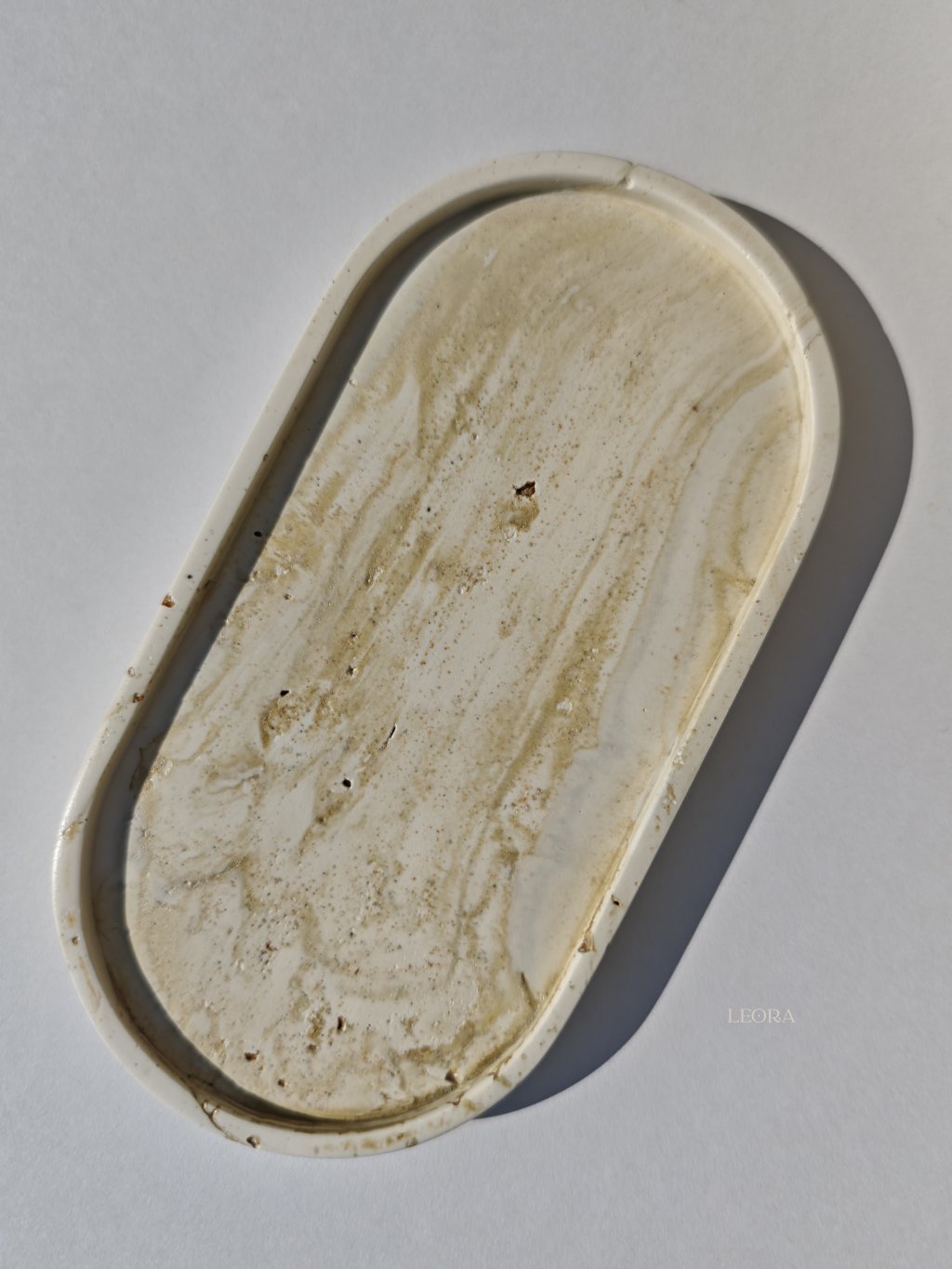 Ručne robené - odlievaním do formy. Každý kus je originál a jedinečný. Minimalistické tácky z hladkého jesmonitu. Ideálne na kľúče, šperky alebo ako podklad pod horúce nápoje.