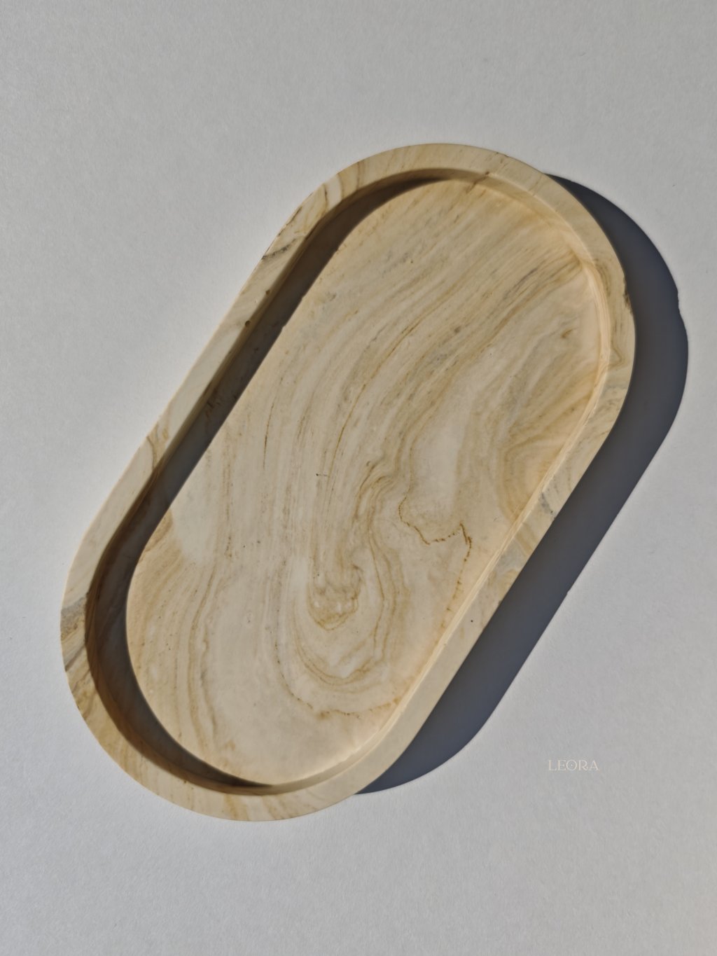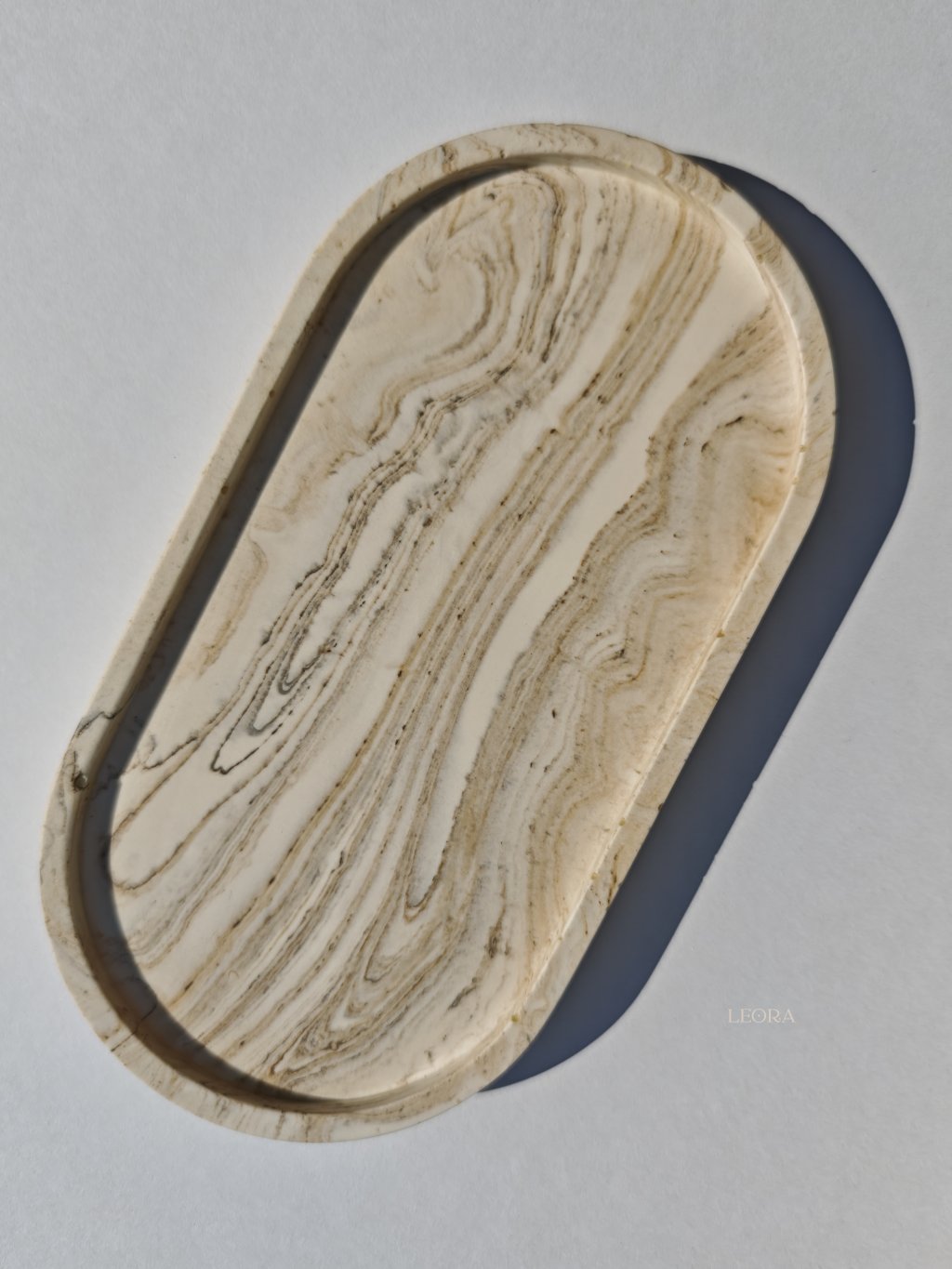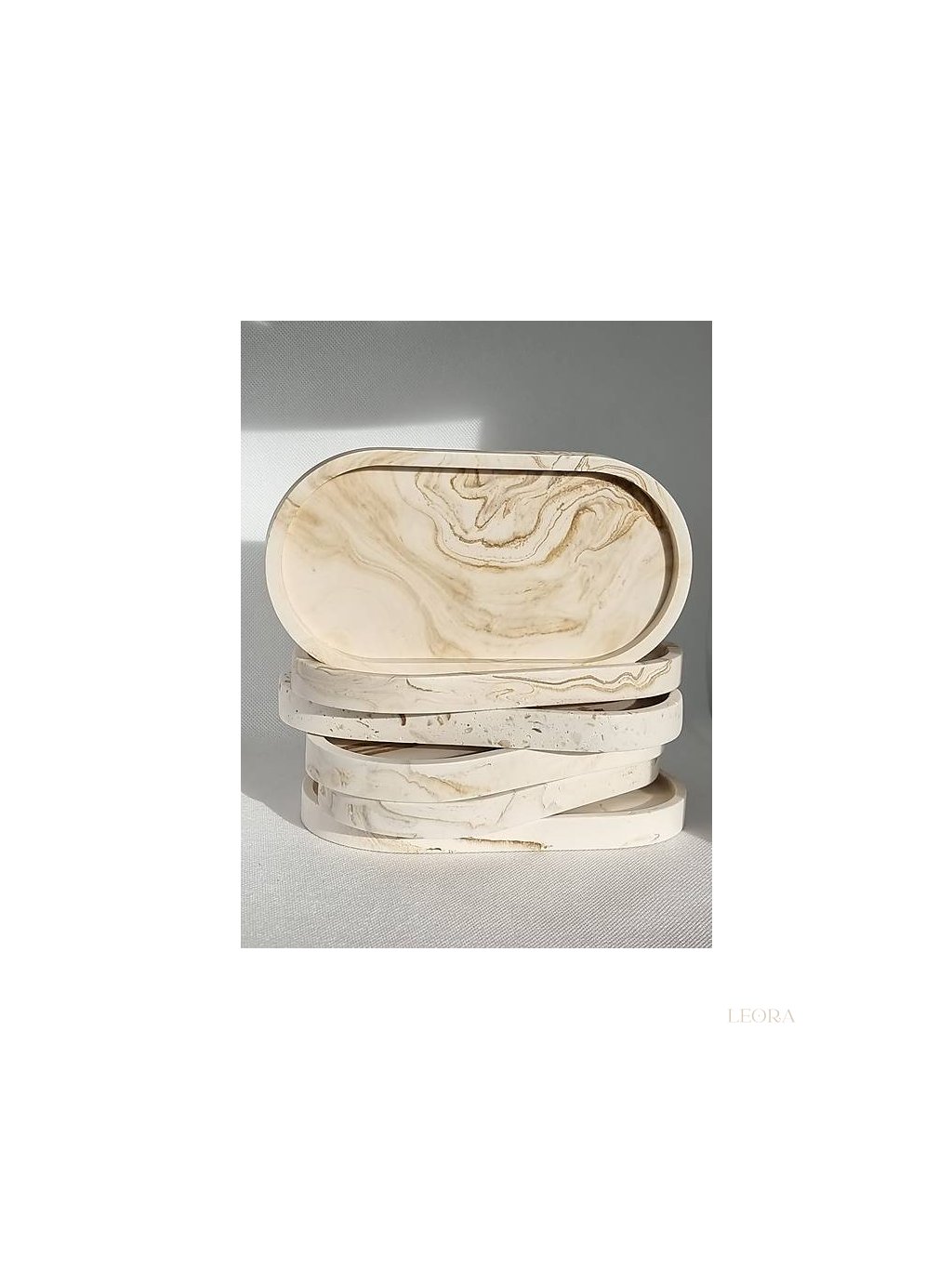 Ručne robené - odlievaním do formy. Každý kus je originál a jedinečný. Minimalistické tácky z hladkého jesmonitu. Ideálne na kľúče, šperky alebo ako podklad pod horúce nápoje.