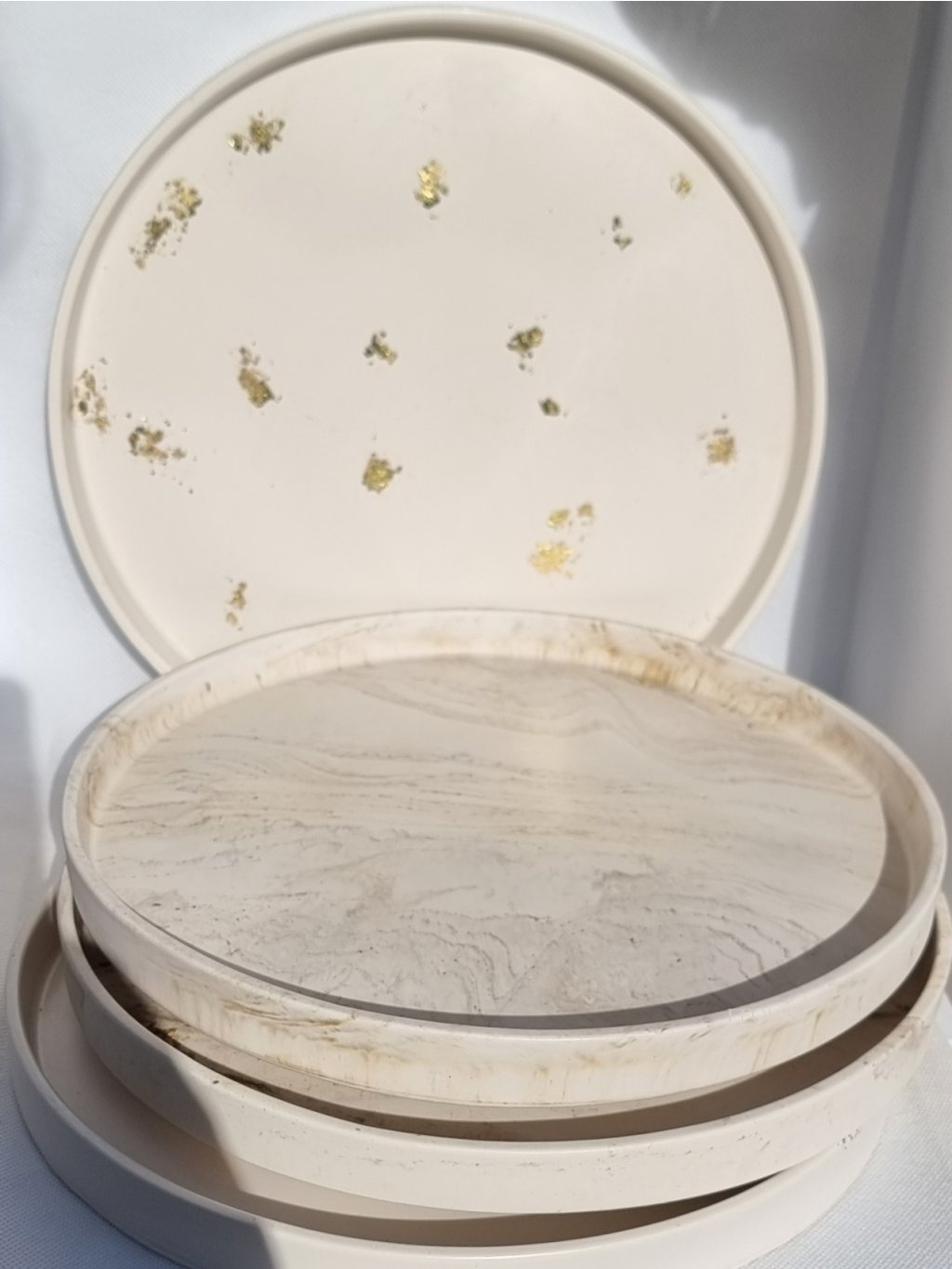 Vyrobené z ekologickej hmoty Jesmonite. Jesmonite je špičkový kompozitný materiál bez obsahu rozpúšťadiel, je kombináciou prírodných surovín so špeciálnou zmesou čistých akrylových polymérov na báze vody. Je to ekologická a bezpečná alternatíva k živici, betónu alebo sadre.
