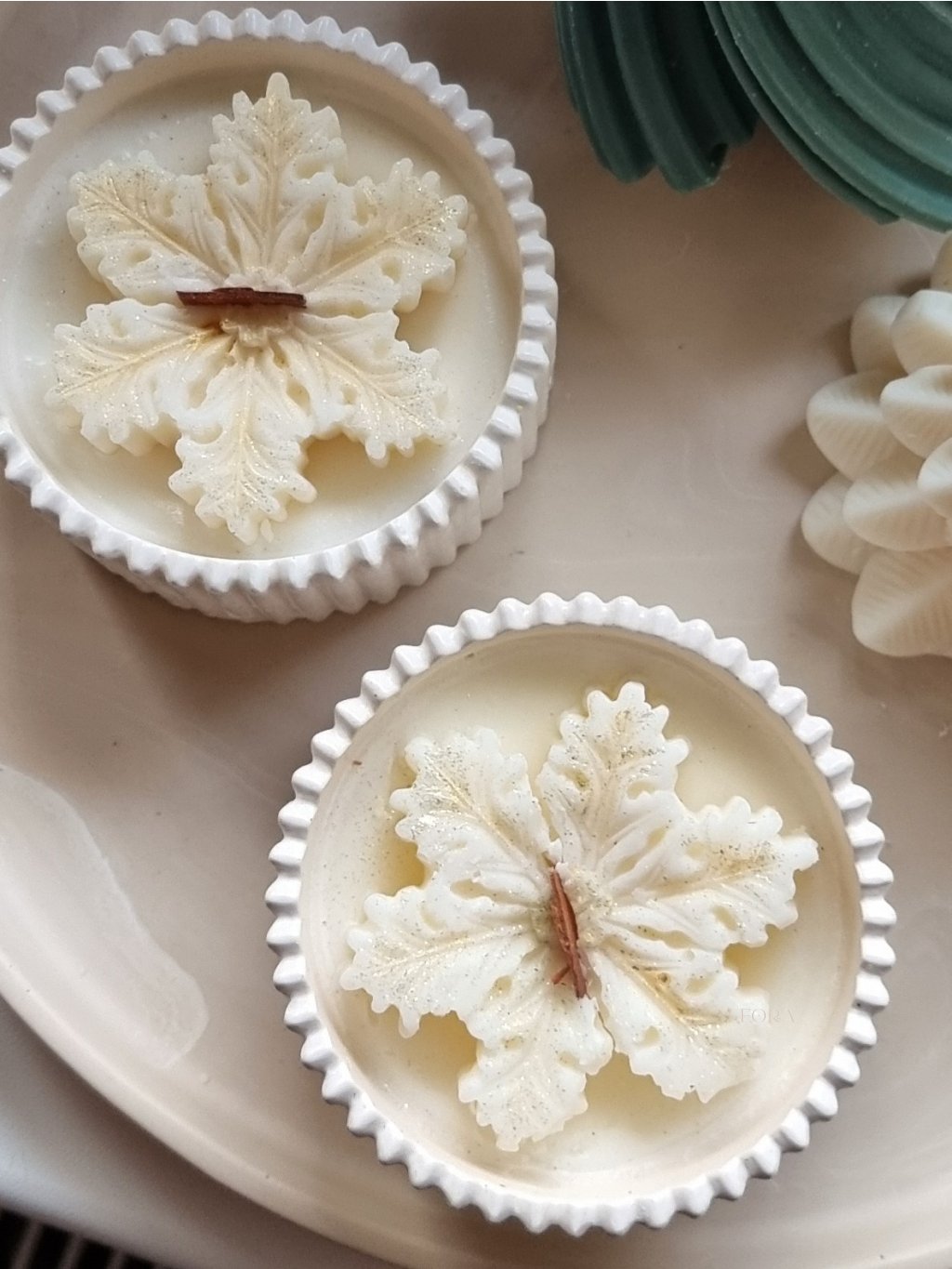 Objavte jedinečné spojenie ručne odlievanej nádobky z eko materiálu Jesmonite a prírodnej sviečky zo sójového vosku. Každý kus je malým umeleckým dielom, kde sa snúbi elegantný dizajn s podmanivými vianočnými vôňami a s vločkou so zlatými eko trbieltkami.