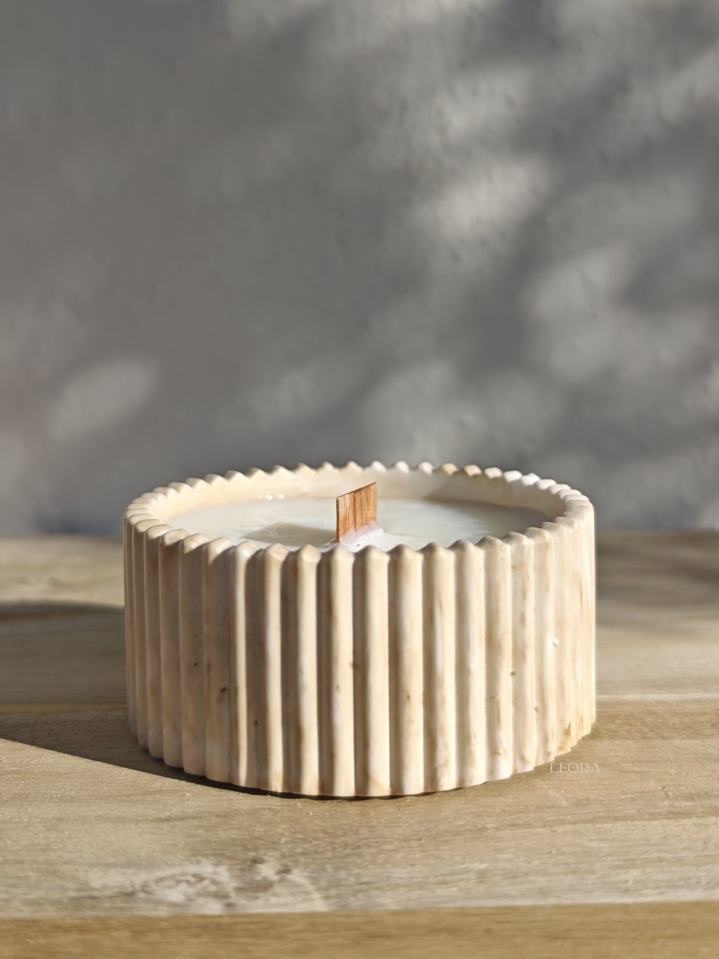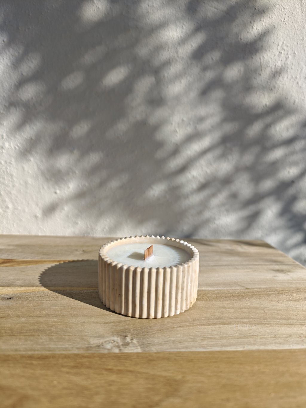 Sójová sviečka v jesmonite nádobke je ideálna ako doplnok do interiéru alebo ako darček pre milovníkov minimalistického dizajnu a prírodných materiálov. Po vyhorení môžeš nádobku využiť ako malú misku, stojan na šperky či dekoráciu alebo si do nej dokúpiť náhradnú náplň ( sviečku ) tu: https://www.leora.sk/nahradna-napln/