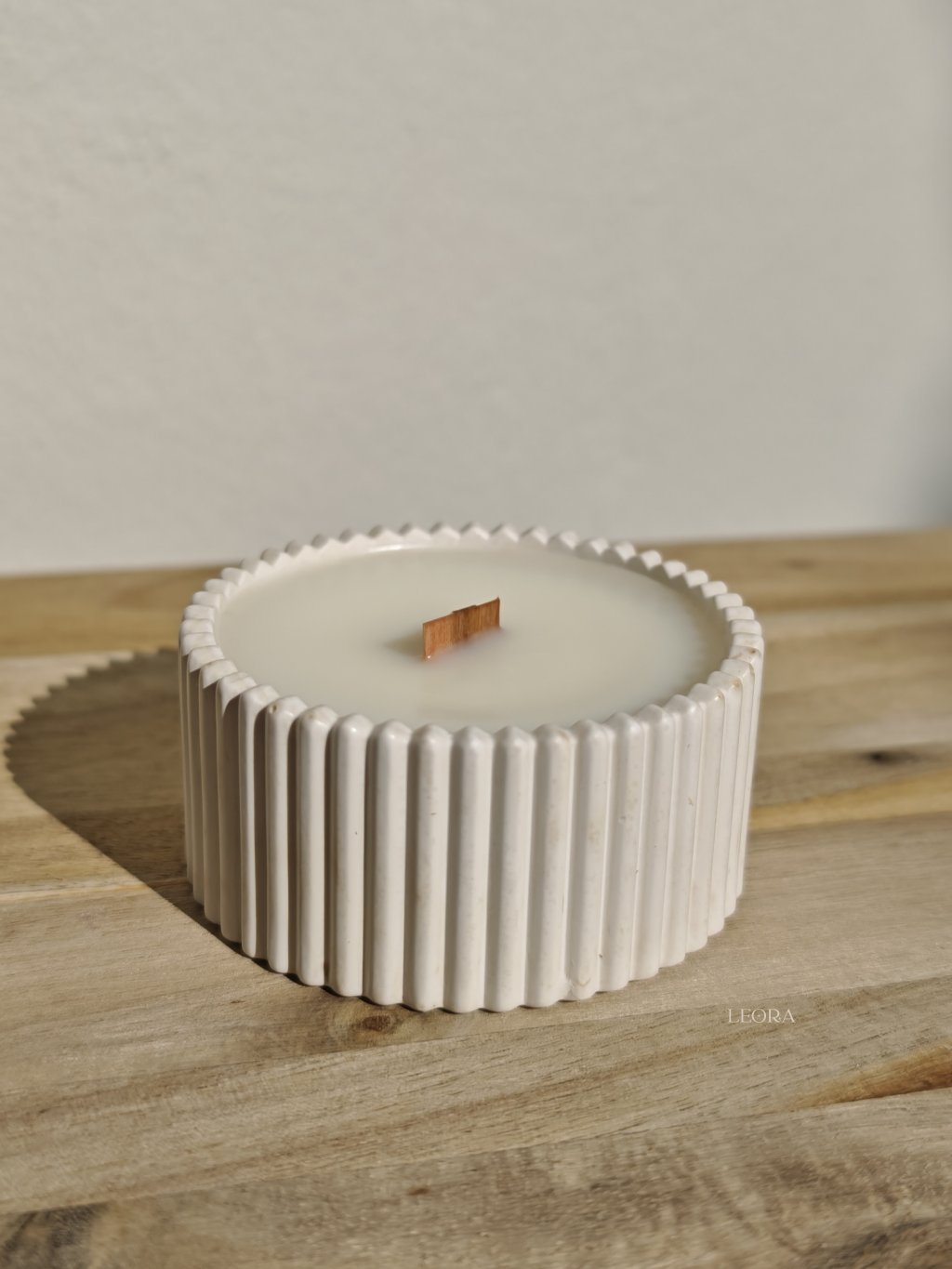 Ideálna ako doplnok do interiéru alebo ako darček pre milovníkov minimalistického dizajnu a prírodných materiálov. Po vyhorení môžeš nádobku využiť ako malú misku, stojan na šperky či dekoráciu.