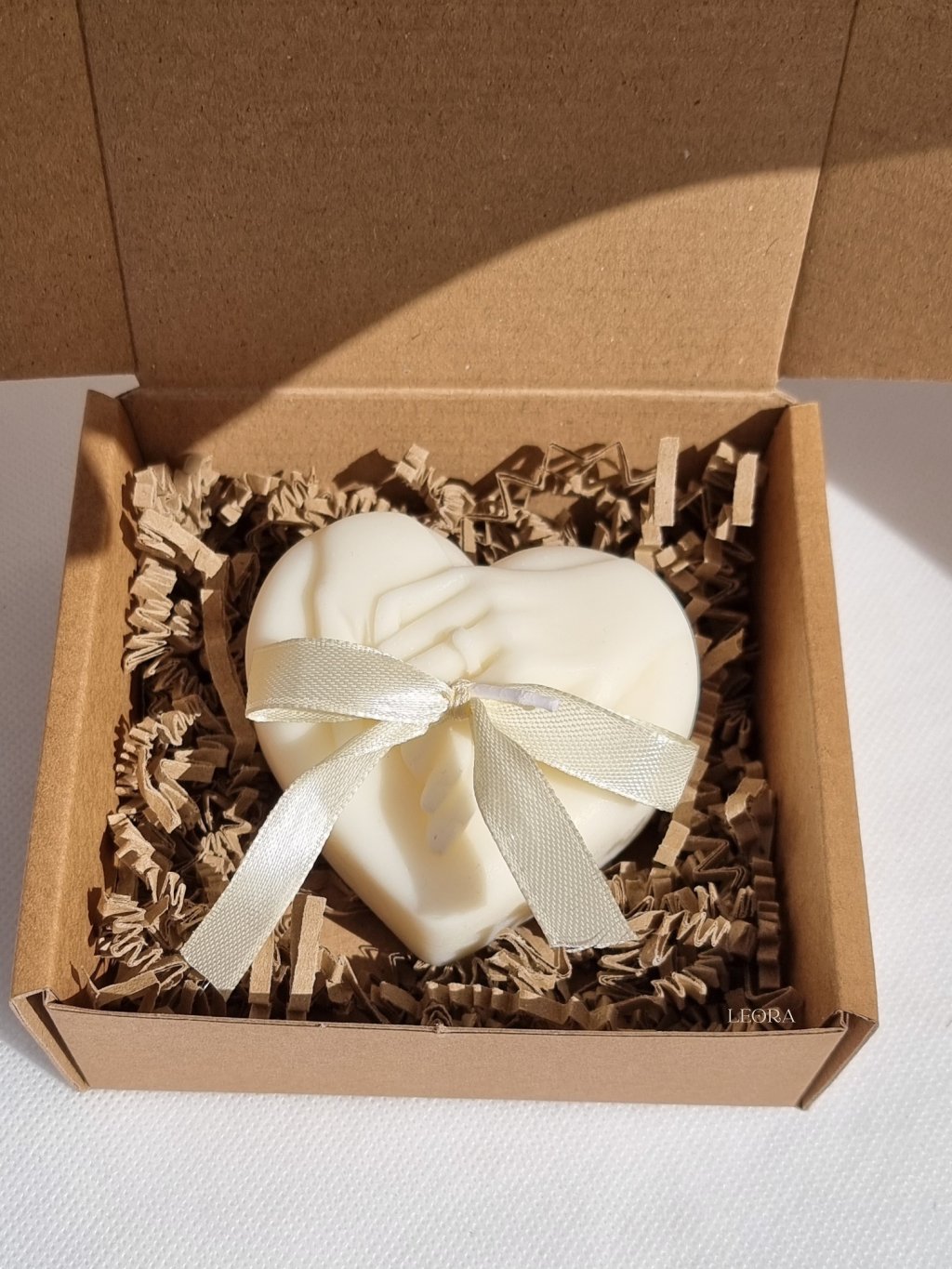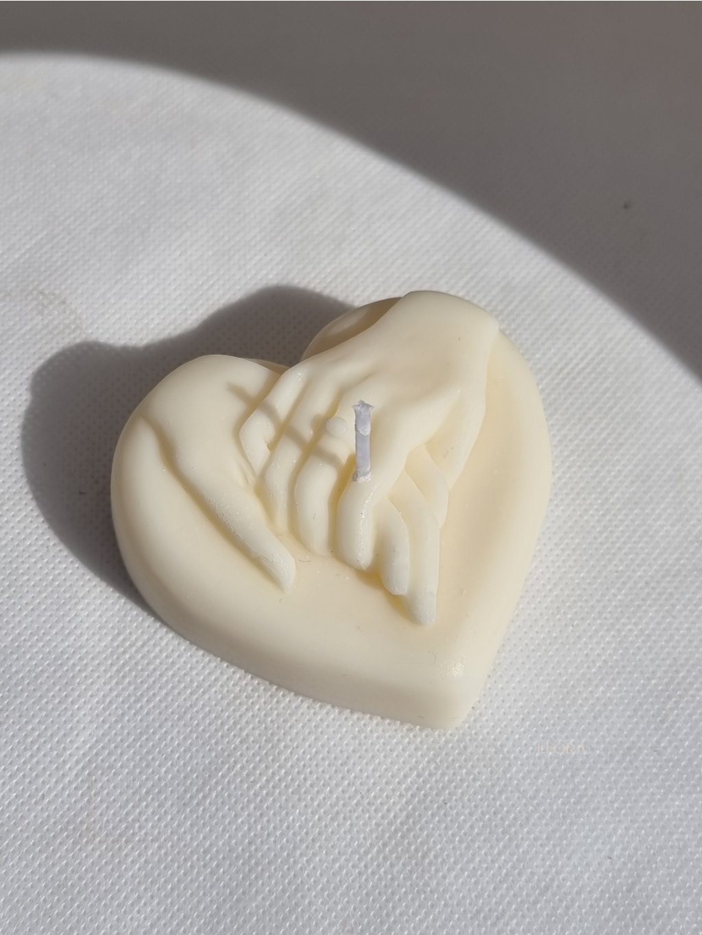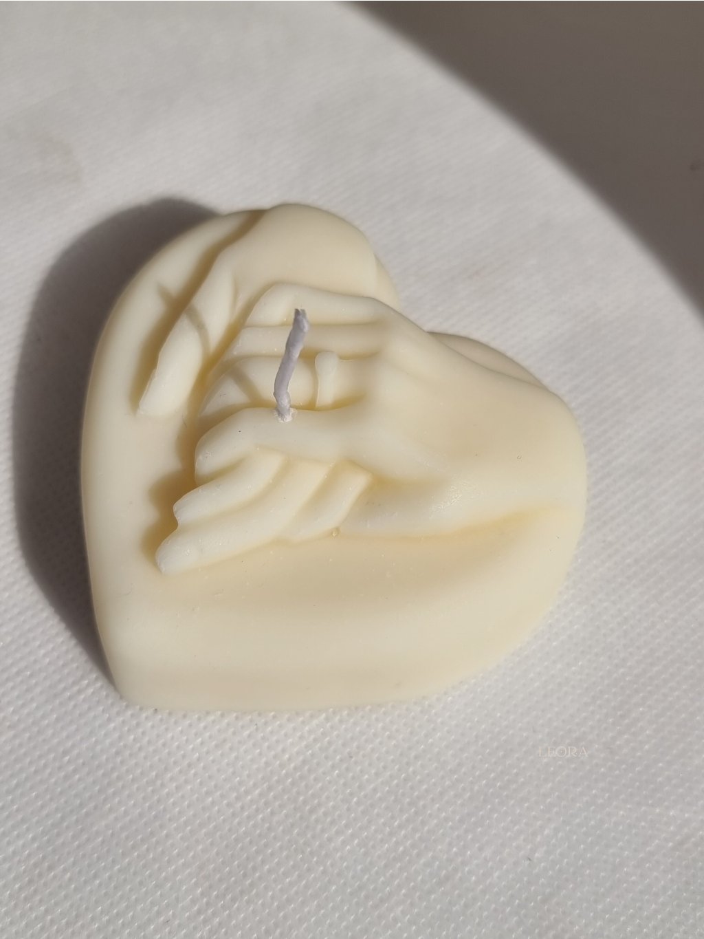 ❤️ Sójová sviečka v tvare srdca s motívom držiacich sa rúk – Symbol lásky a spojenia