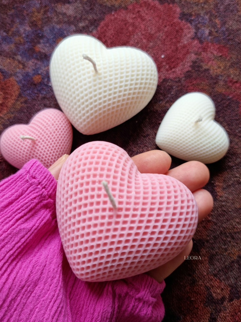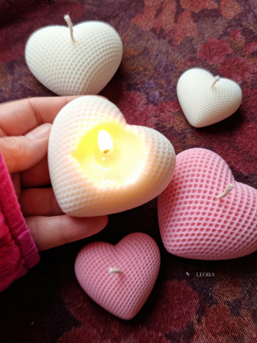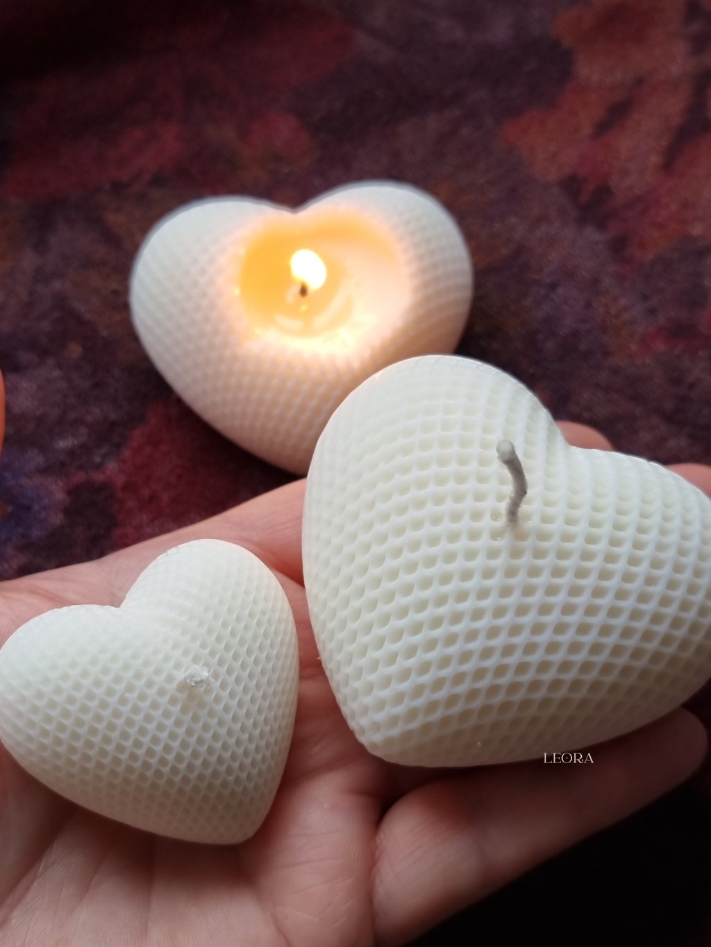 LEORA sviečky v tvare srdca sú symbolom lásky, nehy a výnimočných chvíľ. Každý kus je ručne odlievaný, s dôrazom na detail a jedinečný vzhľad, vďaka čomu je každá sviečka originál. Jemná štruktúra povrchu a čisté línie srdca robia zo sviečky nielen zdroj teplého svetla, ale aj krásny dekoratívny prvok.