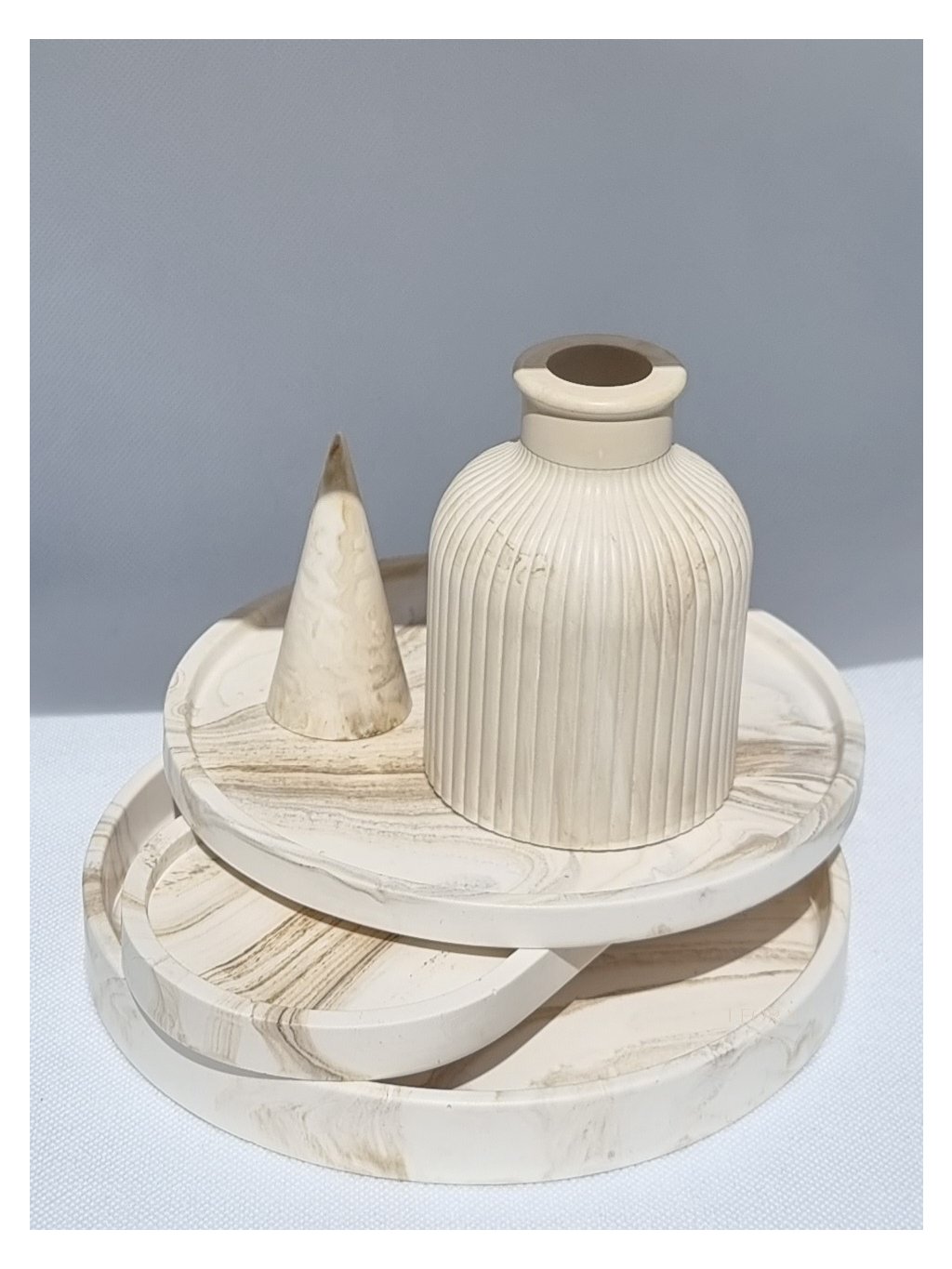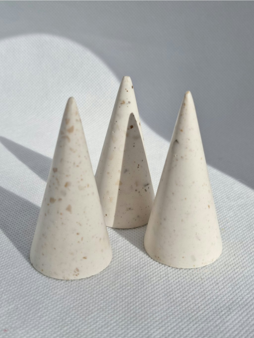 Vyrobené z ekologickej hmoty Jesmonite. Jesmonite je špičkový kompozitný materiál bez obsahu rozpúšťadiel, je kombináciou prírodných surovín so špeciálnou zmesou čistých akrylových polymérov na báze vody. Je to ekologická a bezpečná alternatíva k živici, betónu alebo sadre.