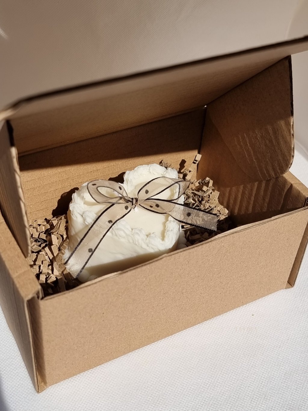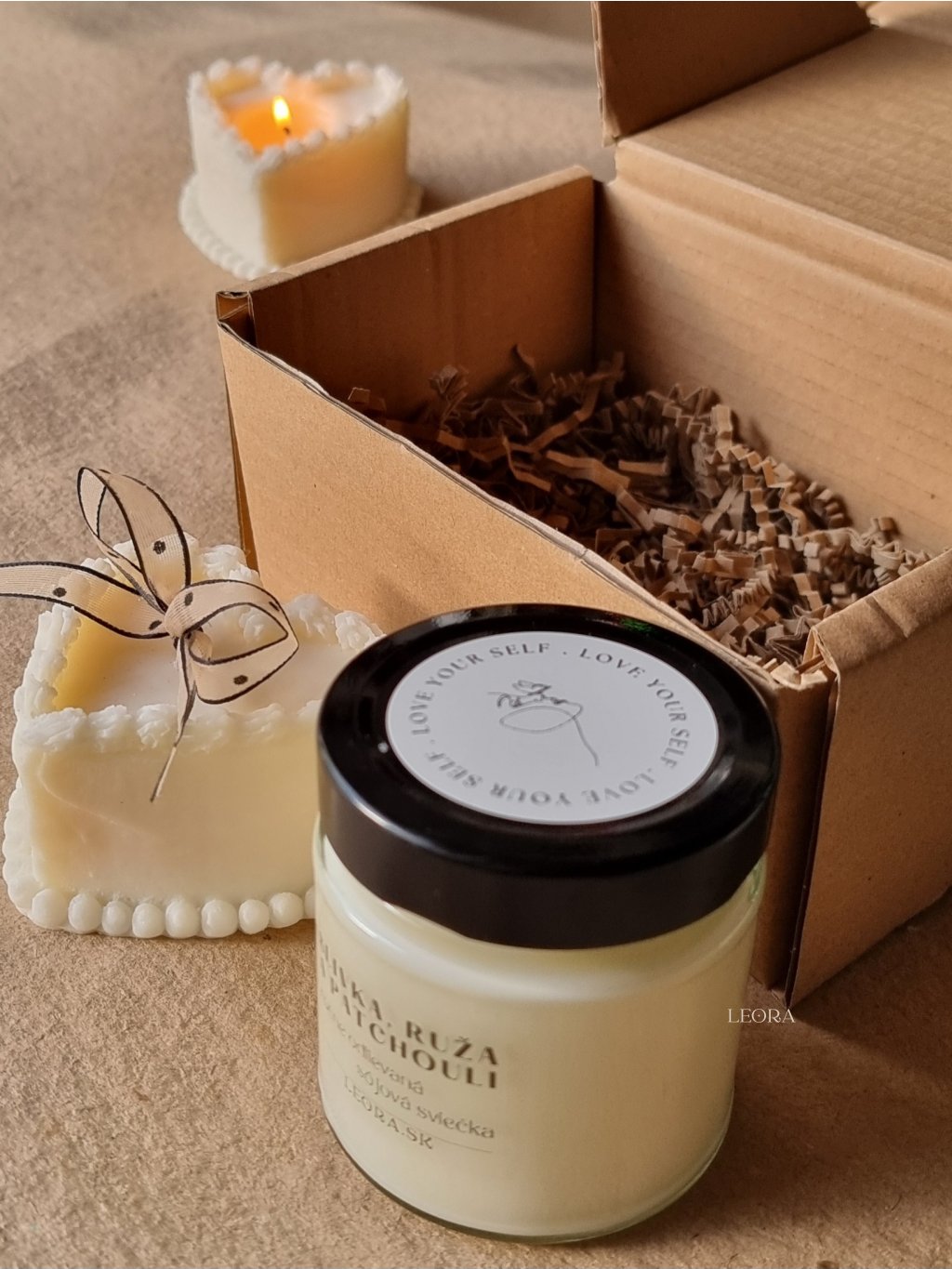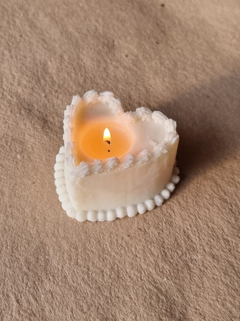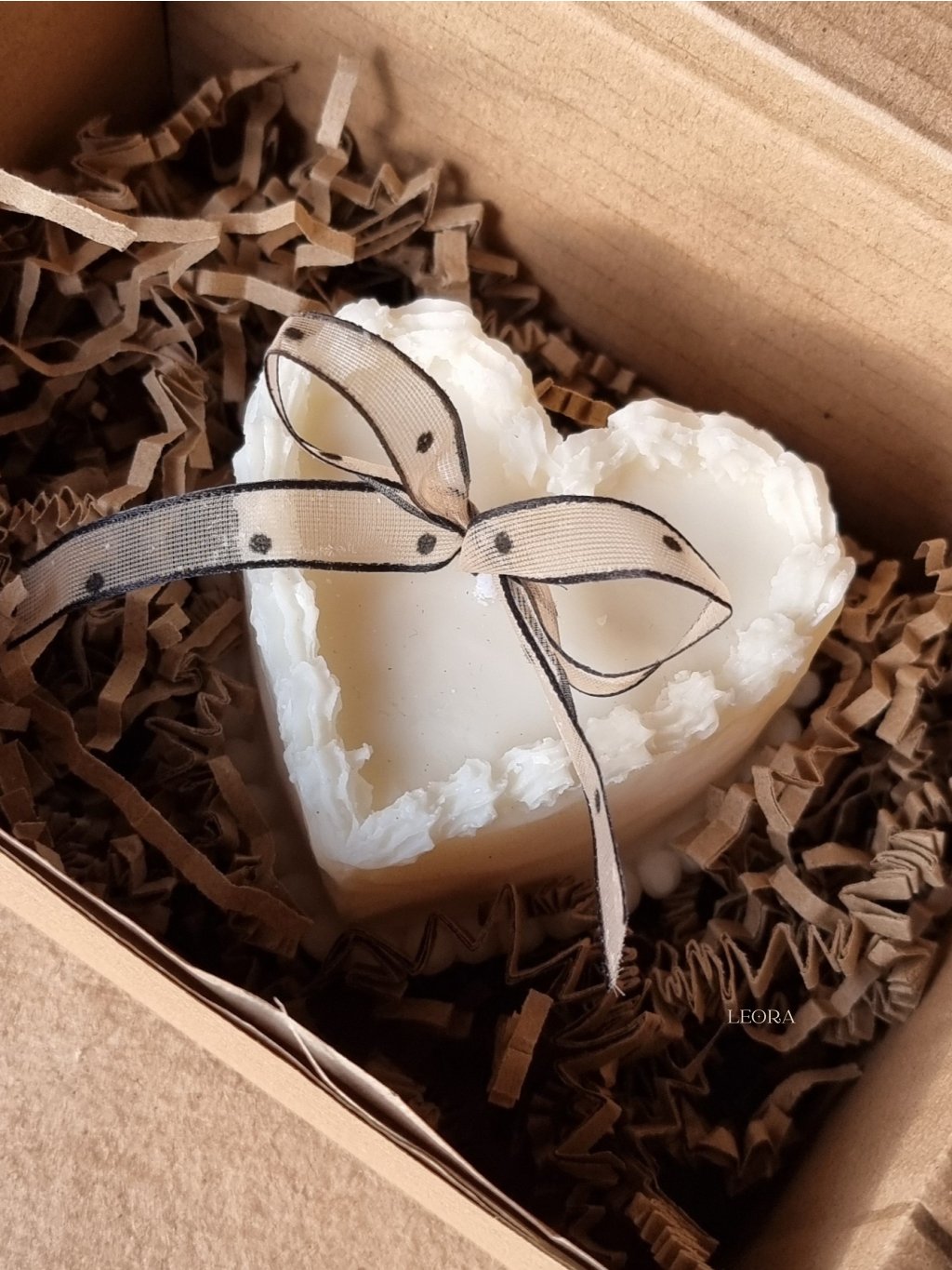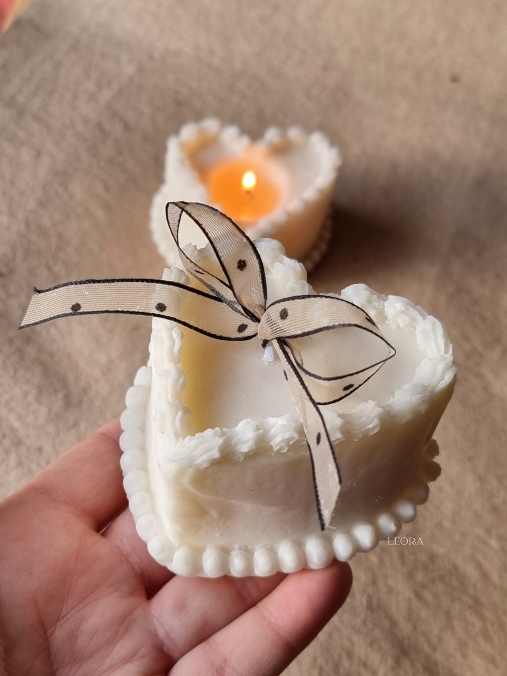 Ideálny darček k Valentínu, narodeninám. Táto ručne vyrobená sójová sviečka v tvare tortičky - srdca je dokonalým doplnkom každej oslavy. Prekvapte svojich blízkych originálnym darčekom.