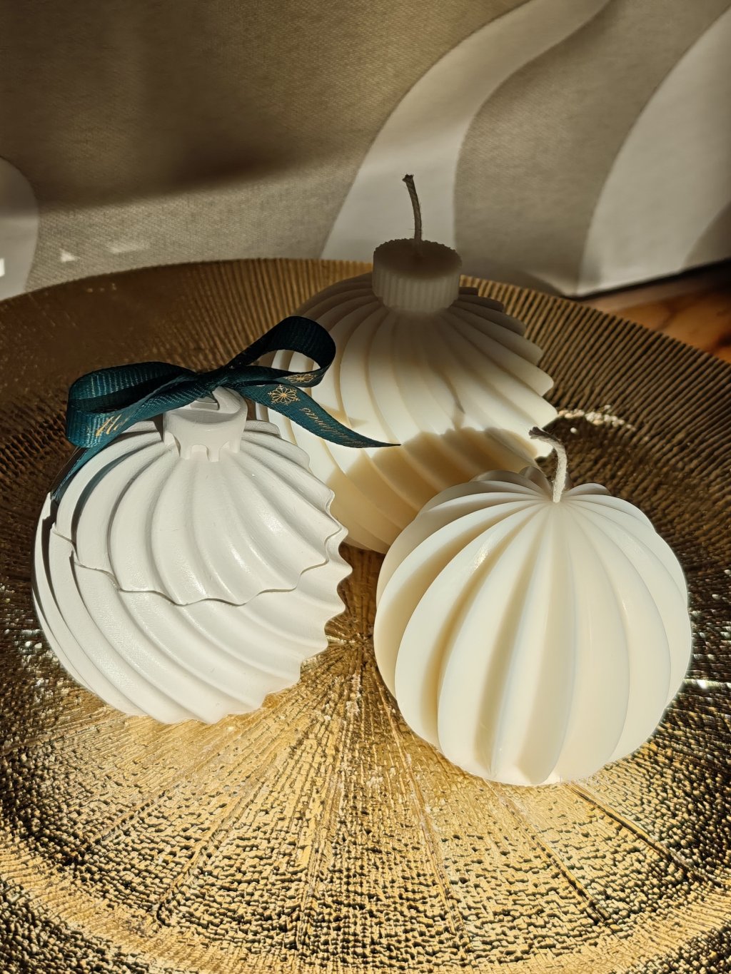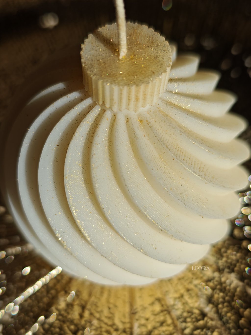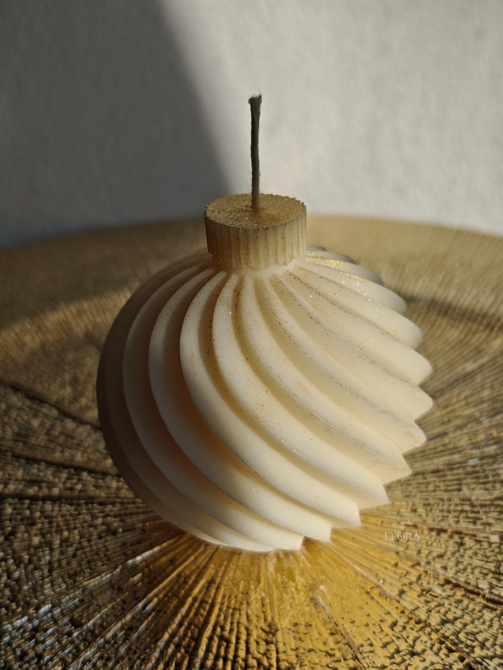 ✨ Dizajnová Vianočná guľa s trblietkami: Sviečka, ktorá v sebe spája moderný dizajn a sviatočnú eleganciu. Jej línie a jemné zlaté trblietky zachytávajú svetlo a premenia ju na luxusnú vianočnú ozdobu zo sójového vosku.