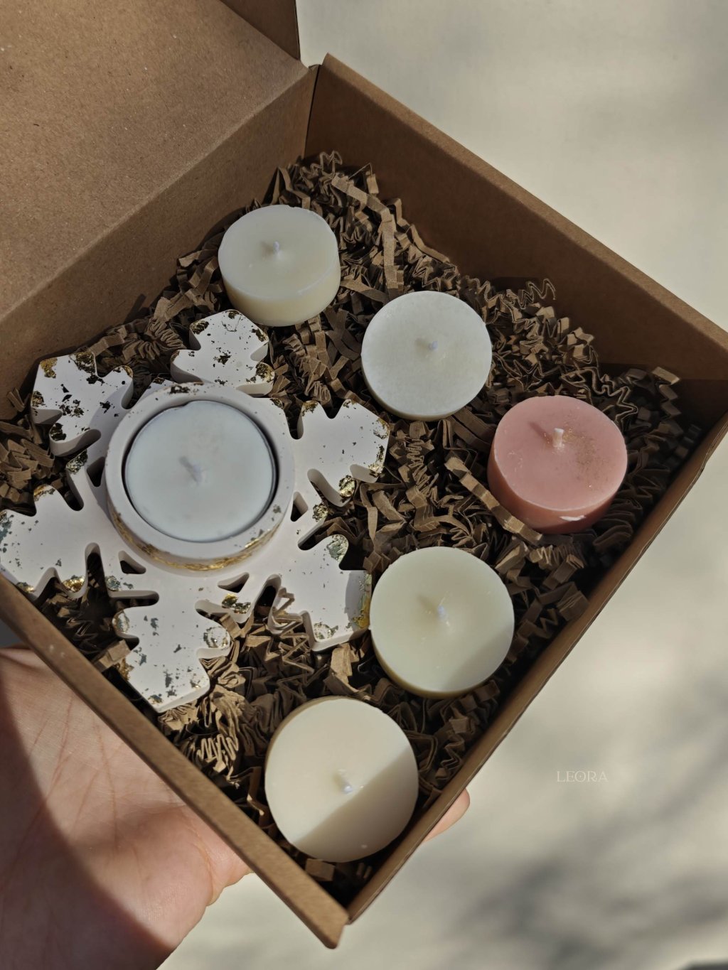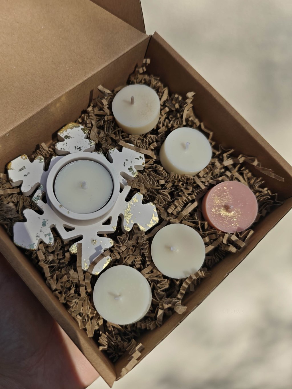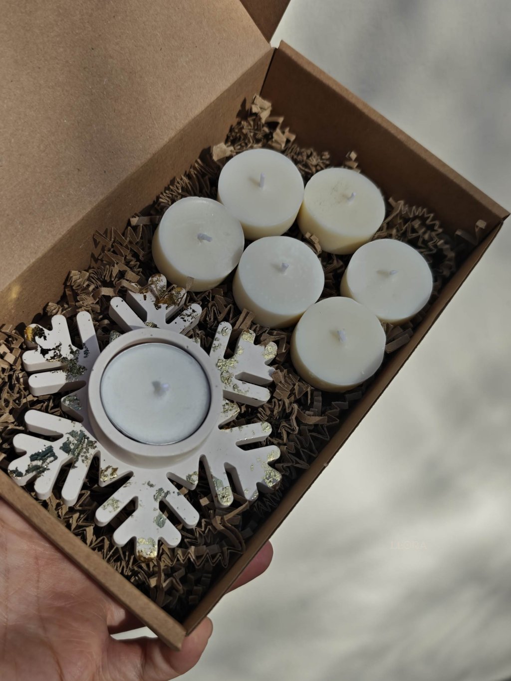 VÝPREDAJ - Darčeková krabička SVIETNIK A ČAJOVÉ SVIEČKY